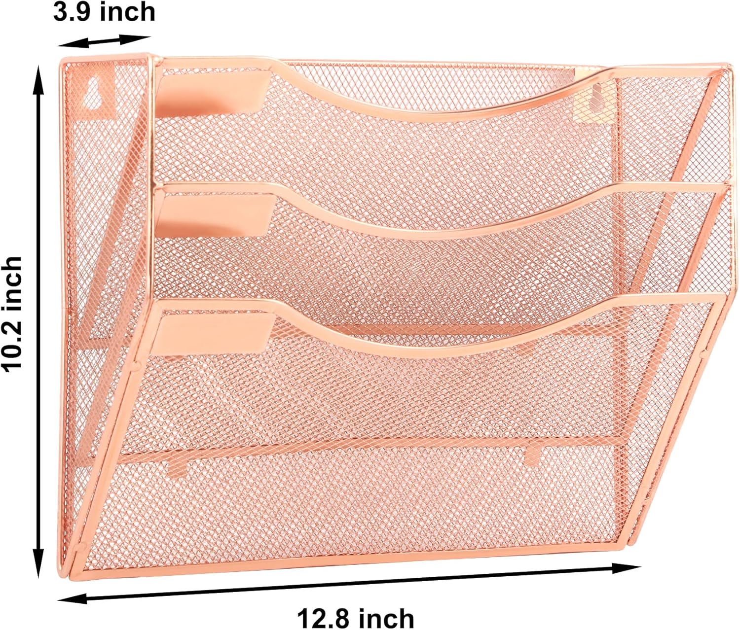 EASEPRES 3 Pocket Mesh Hanging Wall File Organizer, Wall Mounted Mail Paper Document Folder Holder, Clipboard Storage Organization Magazine Rack with Nametag Label for Office Home School, Rose Gold