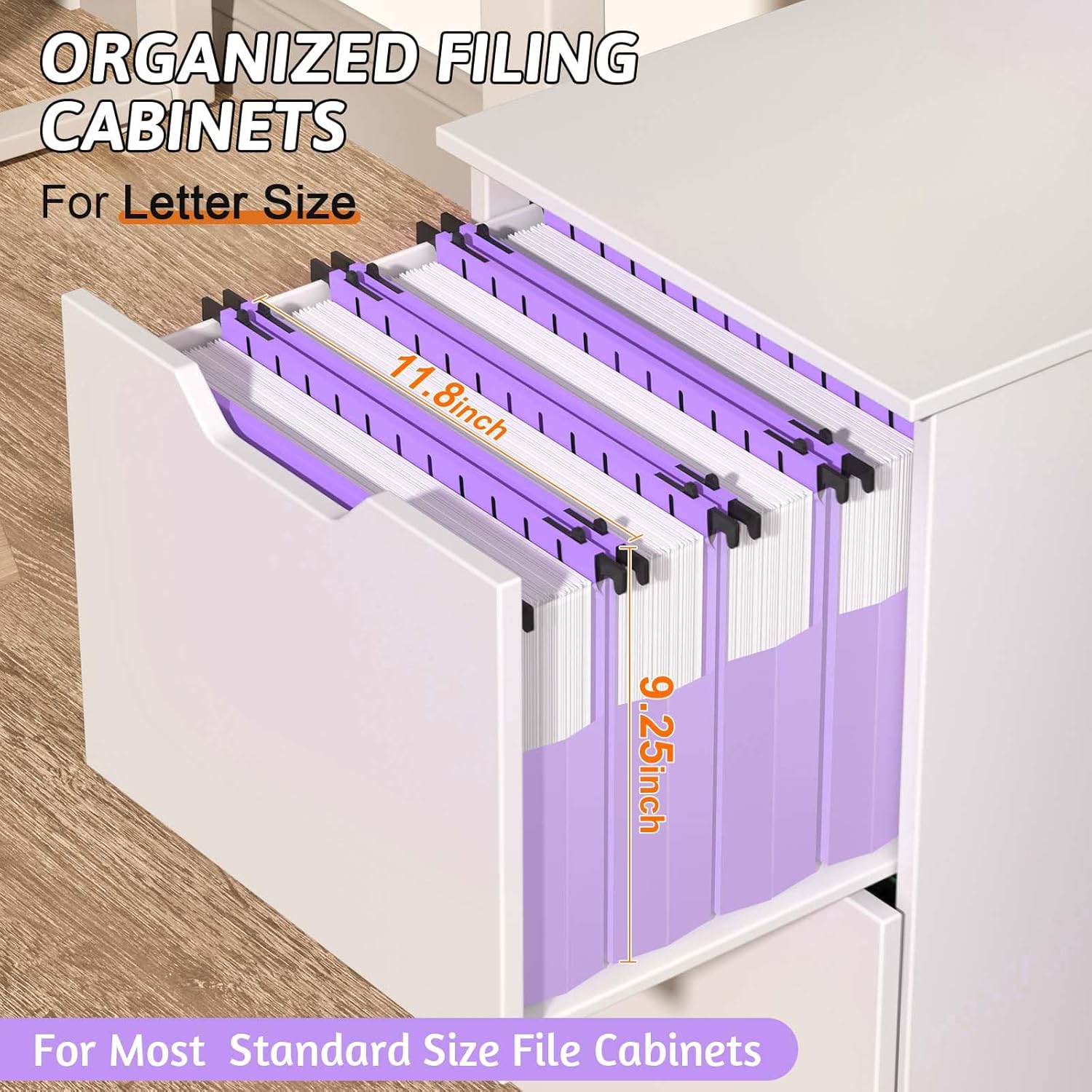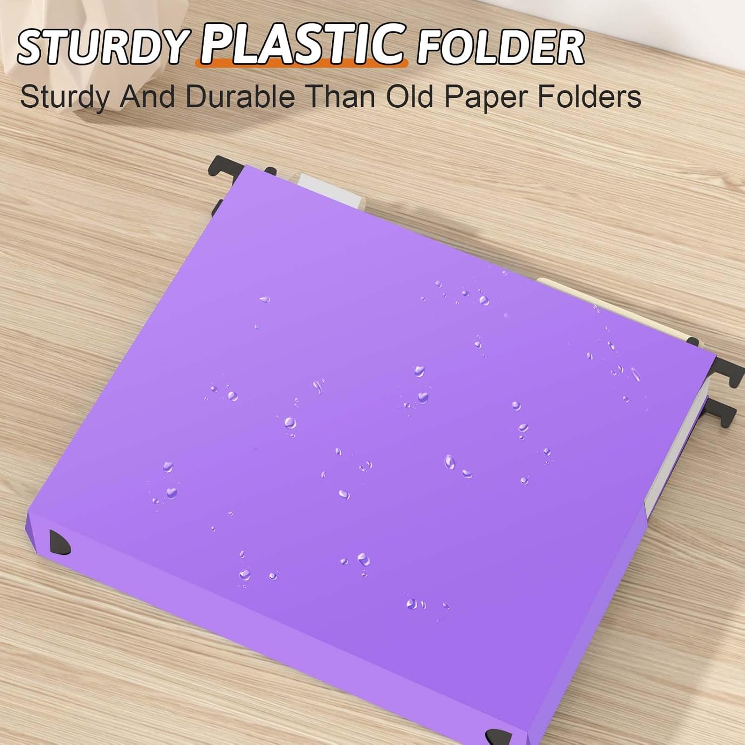 Plastic Extra Capacity Hanging File Folder Letter Size,12 Pack Reinforced Purple Hanging Folders Expandable,Heavy Duty Folders 2 Inch Expansion,Hanging File Organizer Designed for Bulky Files