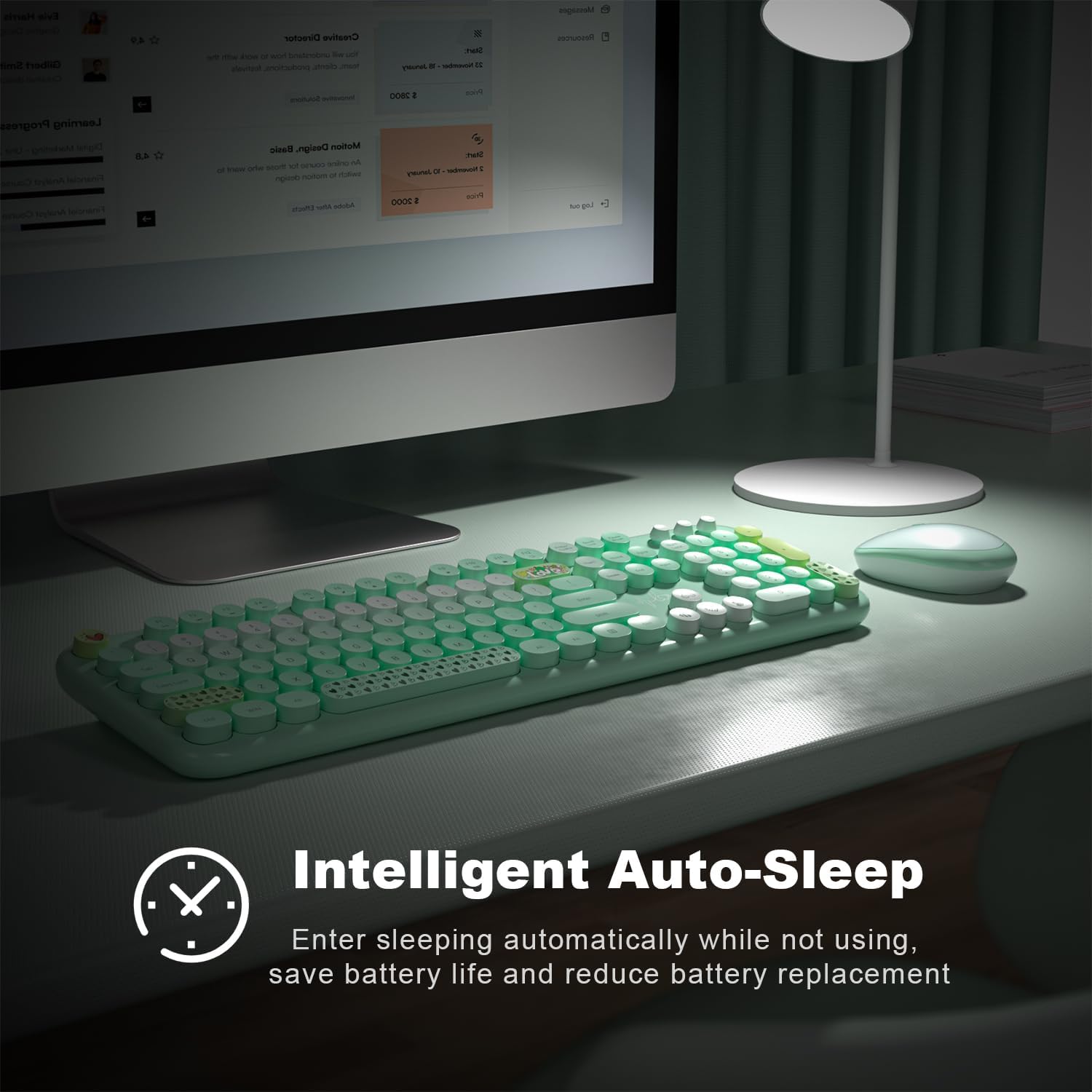 MOFII Wireless Keyboard and Mouse Combo, Full Size 2.4G Plug and Play Typewriter Retro Round Computer Keyboard and Mouse Set for Windows, Computer, Desktop, PC, Notebook - (Green Colorful)
