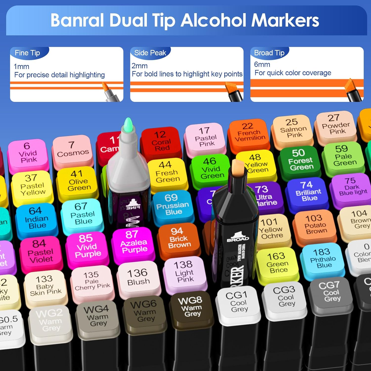 - 【Widely Used】Banral artist markers are gifts for Christmas, Thanksgiving, school students, families, friends. It's for coloring, drawing, sketching, illustrating, shading, designing, rendering, comics, adult coloring books and more. Buy now and you will quickly experience the happiness that other painting products can't give.
