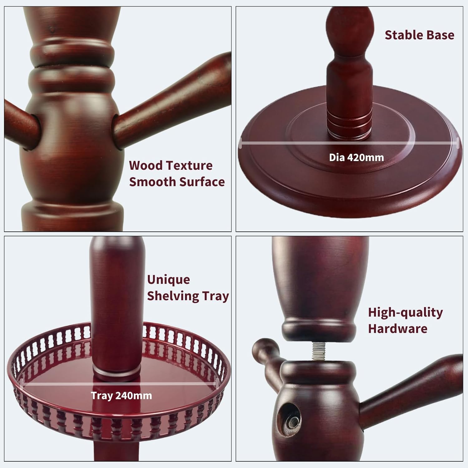 Coat Rack, Birch Wooden Hall Tree Coat Rack Free Standing with 9 Hooks, Wooden Round Base,Coat Tree for Home/Office/Entryway/Hallway (Dark Red )