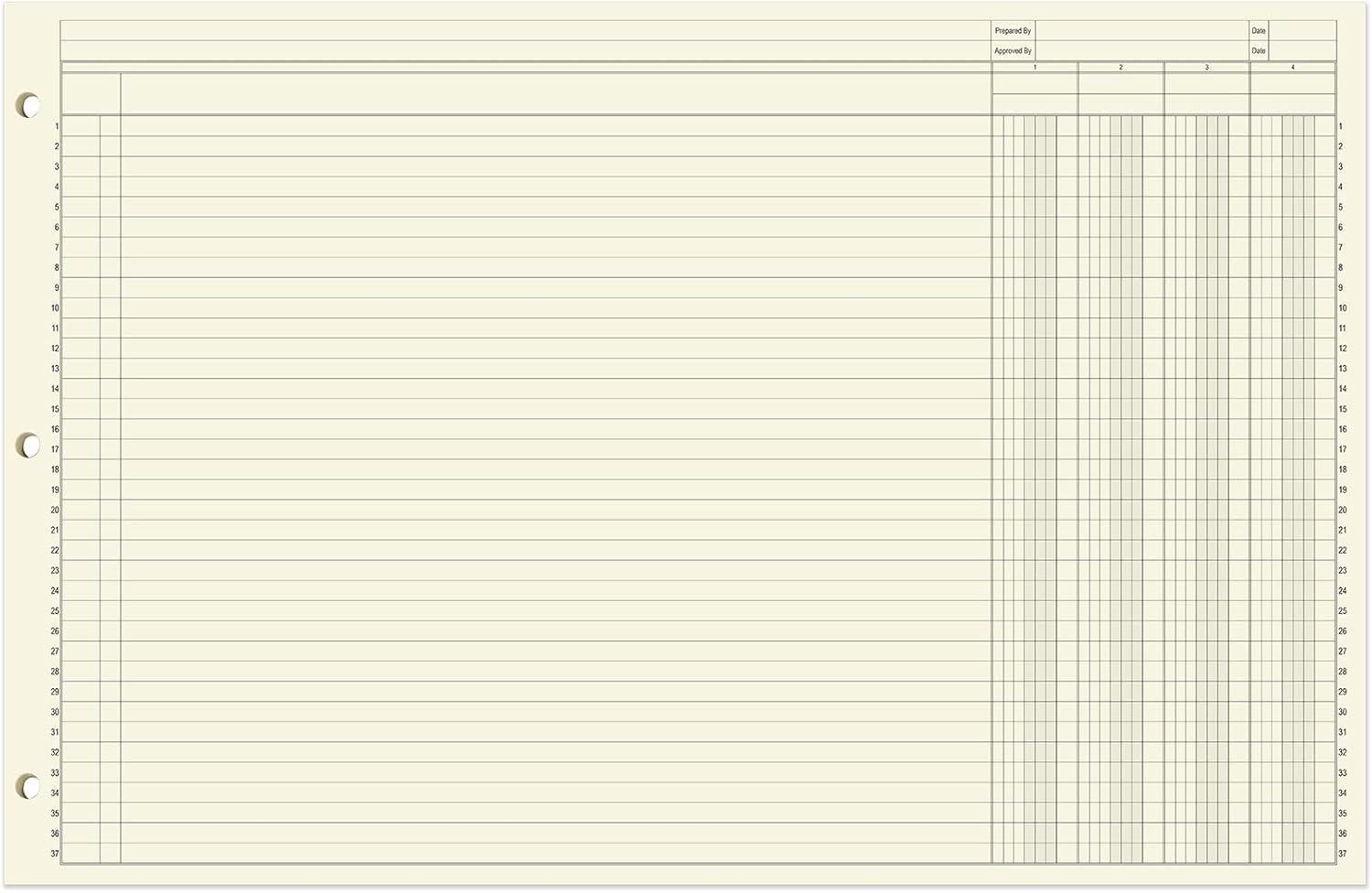 - Three hole punched for binders: There is a three hole punch on the side of these 17" x 11" loose leaf sheets so that you can put these sheets into any three ring binder used in your business. This loose leaf sheet format is the perfect way to integrate your bookkeeping sheets into any organization strategy you already use. The paper is archival quality and acid-free, keeping your financials safe for years.