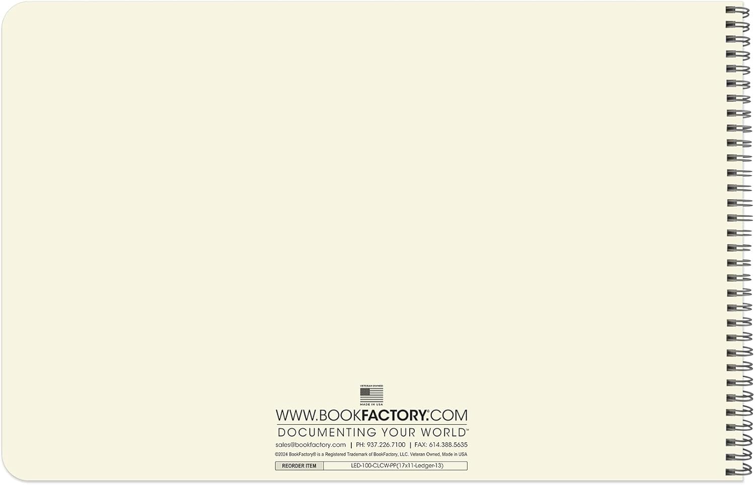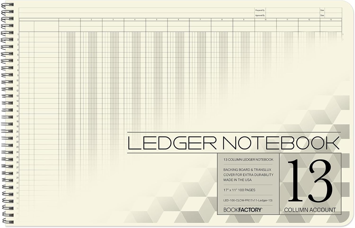 BookFactory Accounting Ledger Notebook/Large 13 Column Accounting Ledger Columnar (Thirteen Columns) Log Book - 17'' x 11'', 100 Pages, Wire-O Landscape Format (LED-100-CLCW-PP(17x11-Ledger-13)-AX)