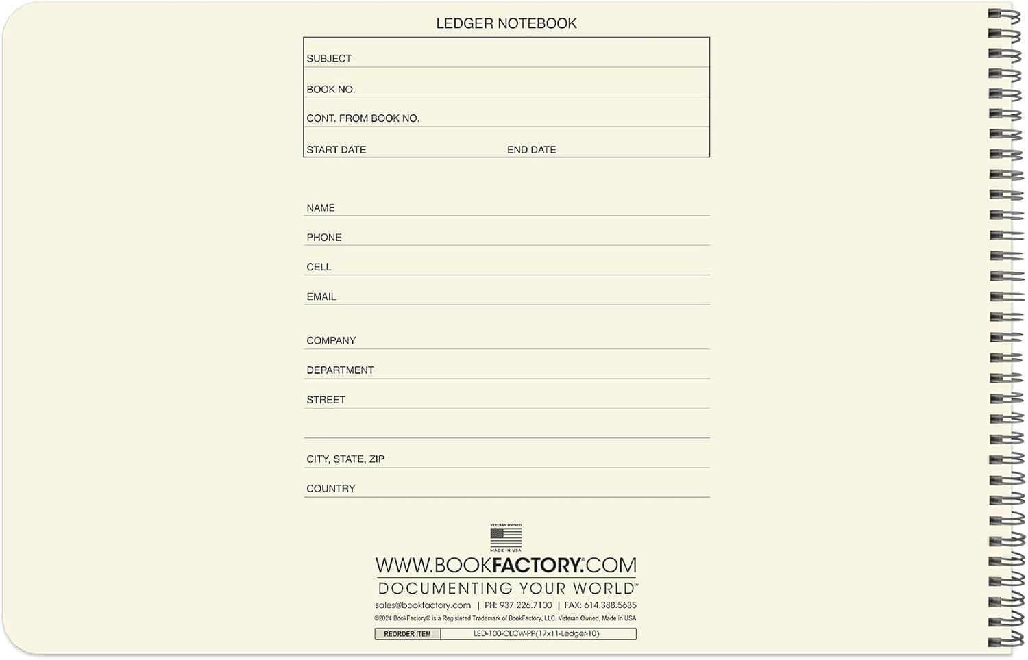 BookFactory Accounting Ledger Notebook/Large 10 Column Accounting Ledger Columnar (Ten Columns) Log Book - 17'' x 11'', 100 Pages, Wire-O Landscape Format (LED-100-CLCW-PP(17x11-Ledger-10)-AX)