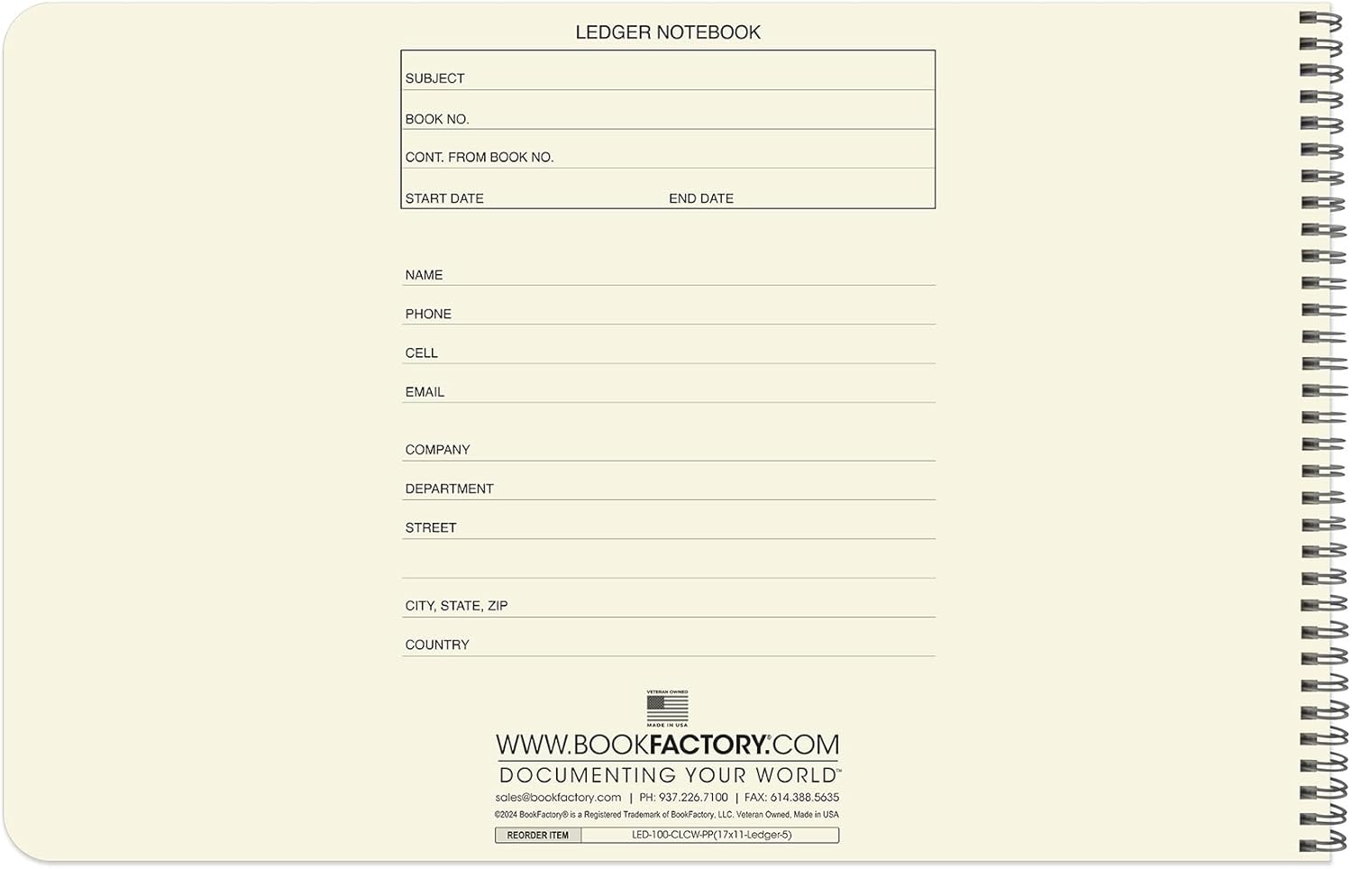 BookFactory Accounting Ledger Notebook/Large 5 Column Accounting Ledger Columnar (Five Columns) Log Book - 17'' x 11'', 100 Pages, Wire-O Landscape Format (LED-100-CLCW-PP(17x11-Ledger-5)-AX)