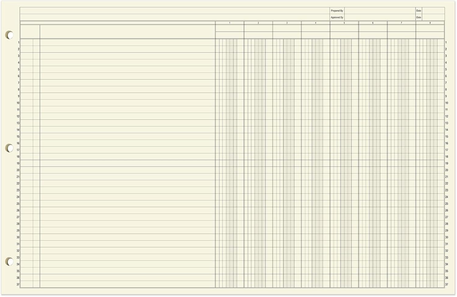 - Three hole punched for binders: There is a three hole punch on the side of these 17" x 11" loose leaf sheets so that you can put these sheets into any three ring binder used in your business. This loose leaf sheet format is the perfect way to integrate your bookkeeping sheets into any organization strategy you already use. The paper is archival quality and acid-free, keeping your financials safe for years.