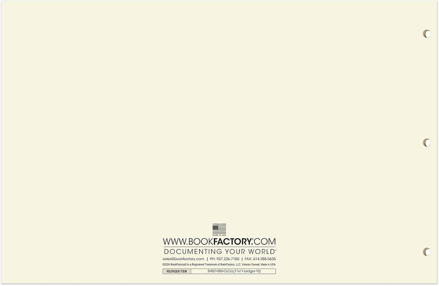 BookFactory Ledger Sheets/Large 10 Column Accounting Ledger Columnar (Ten Columns) Loose Leaf Paper - 17'' x 11'', 50 Pages, Loose Leaf, 3 Hole Punched (SHEET-050-CLCLL(17x11-Ledger-10)-AX)