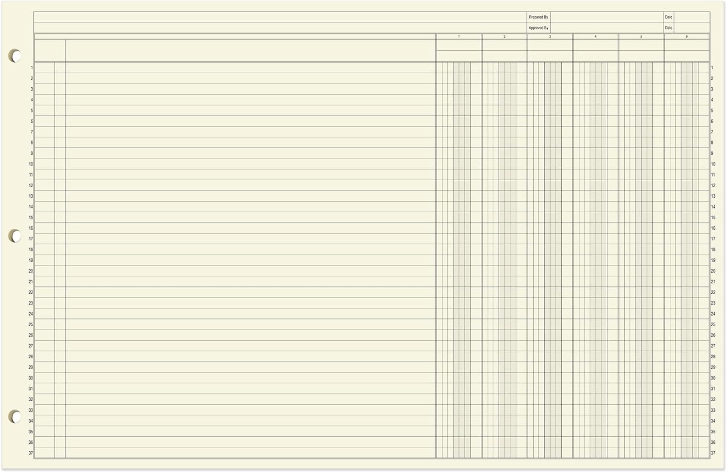 - Three hole punched for binders: There is a three hole punch on the side of these 17" x 11" loose leaf sheets so that you can put these sheets into any three ring binder used in your business. This loose leaf sheet format is the perfect way to integrate your bookkeeping sheets into any organization strategy you already use. The paper is archival quality and acid-free, keeping your financials safe for years.