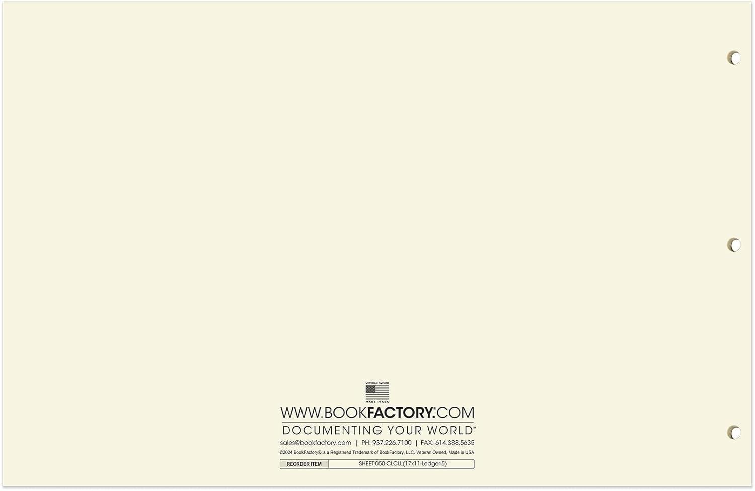 BookFactory Ledger Sheets/Large 5 Column Accounting Ledger Columnar (Five Columns) Loose Leaf Paper - 17'' x 11'', 50 Pages, Loose Leaf, 3 Hole Punched (SHEET-050-CLCLL(17x11-Ledger-5)-AX)