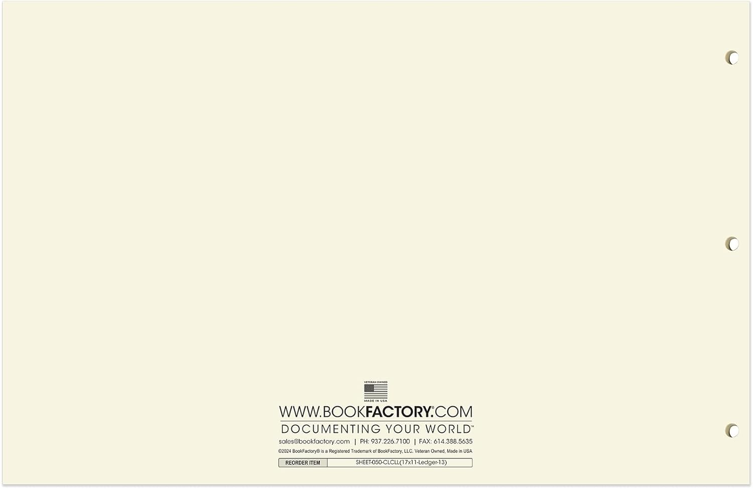 BookFactory Ledger Sheets/Large 13 Column Accounting Ledger Columnar (Thirteen Columns) Loose Leaf Paper - 17'' x 11'', 50 Pages, Loose Leaf, 3 Hole Punched (SHEET-050-CLCLL(17x11-Ledger-13)-AX)