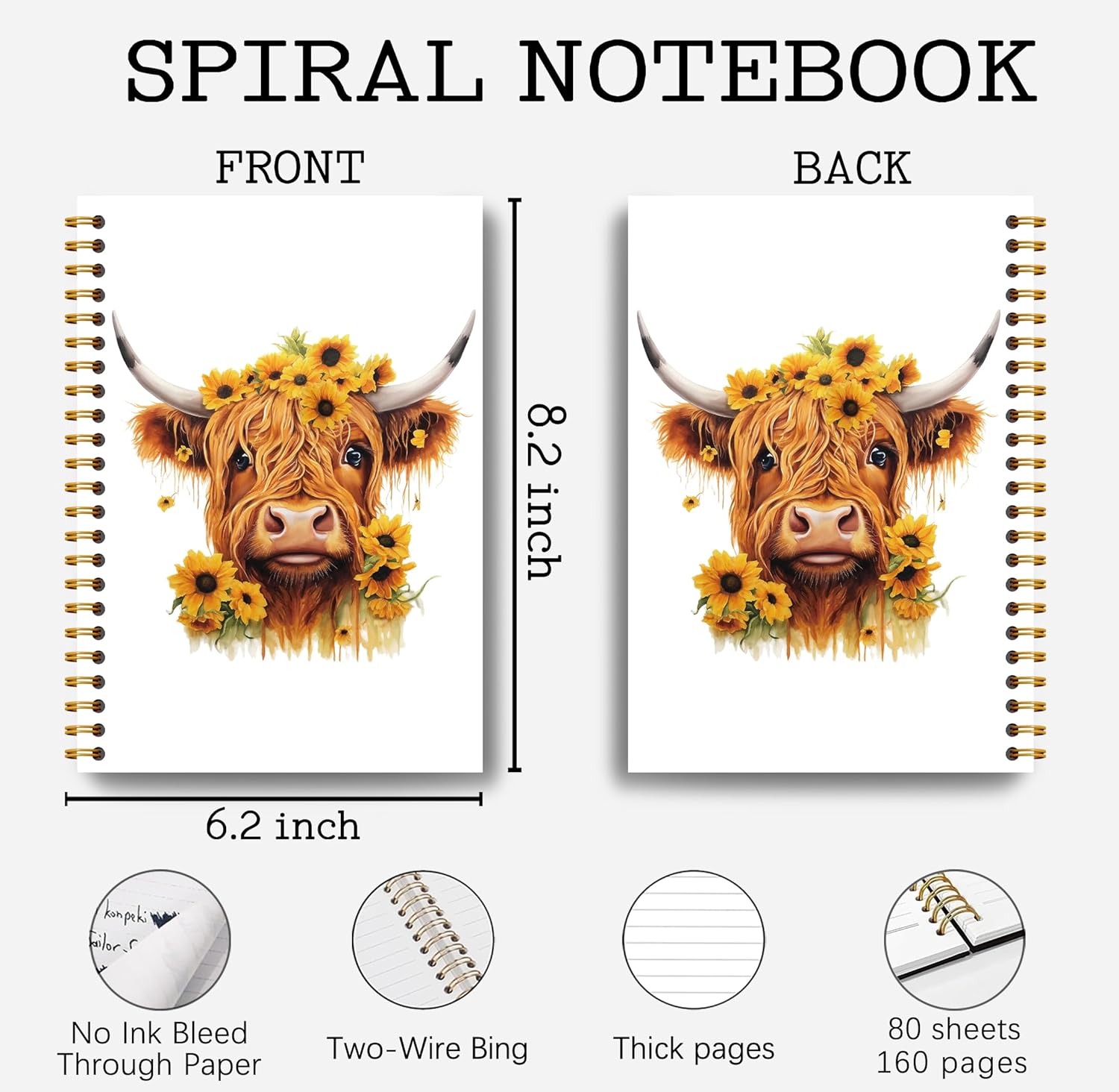 Sunflower Highland Cow Notebook - Western Notebook, Cow Notebook, Highland Cow Office Supplies, Highland Cow Gifts, Cow Stuff, Farmhouse Highland Cows Spiral Notebook 5.5x8.3