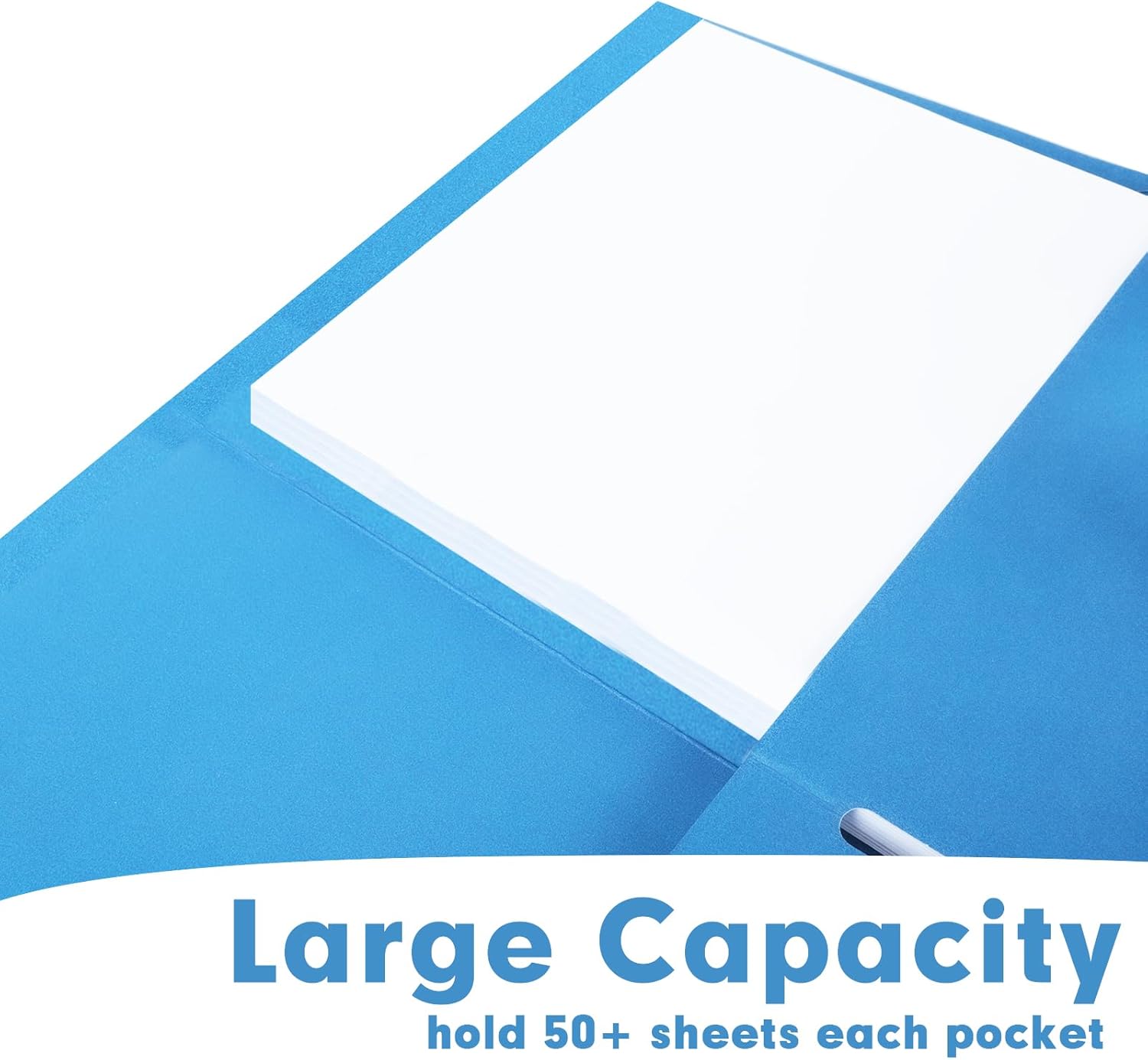 - TWO POCKET FOLDER SET: 50 Pack blue paper folders with 2 inner pocket and 2 business card slots. Deep pocket design can provide secure storage space for papers, files or other important materials