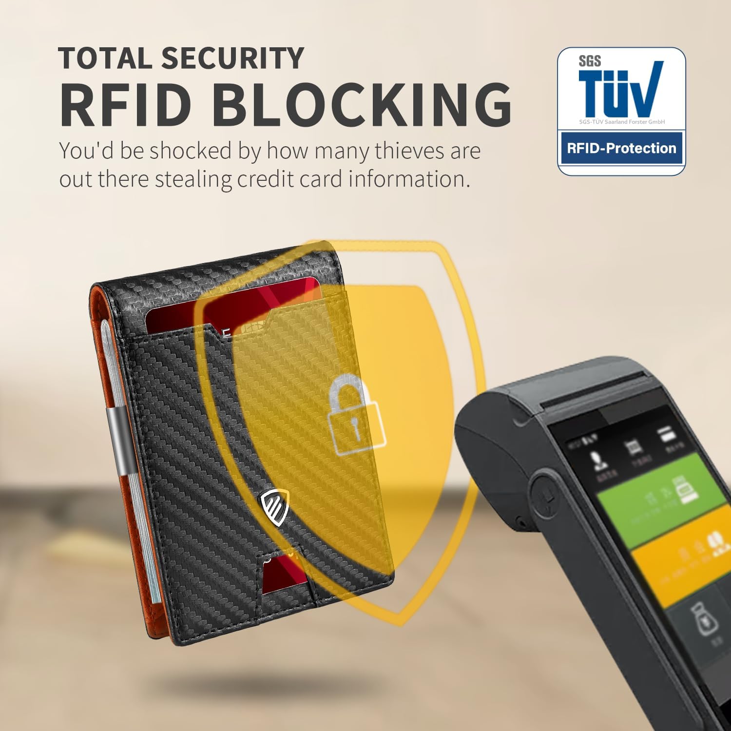 - RFID Blocking Protection - This rfid wallet for men is tested by an independent German quality control institute, specifically to block 13.56 MHz or higher RFID signals and protect against data theft by RFID scanners