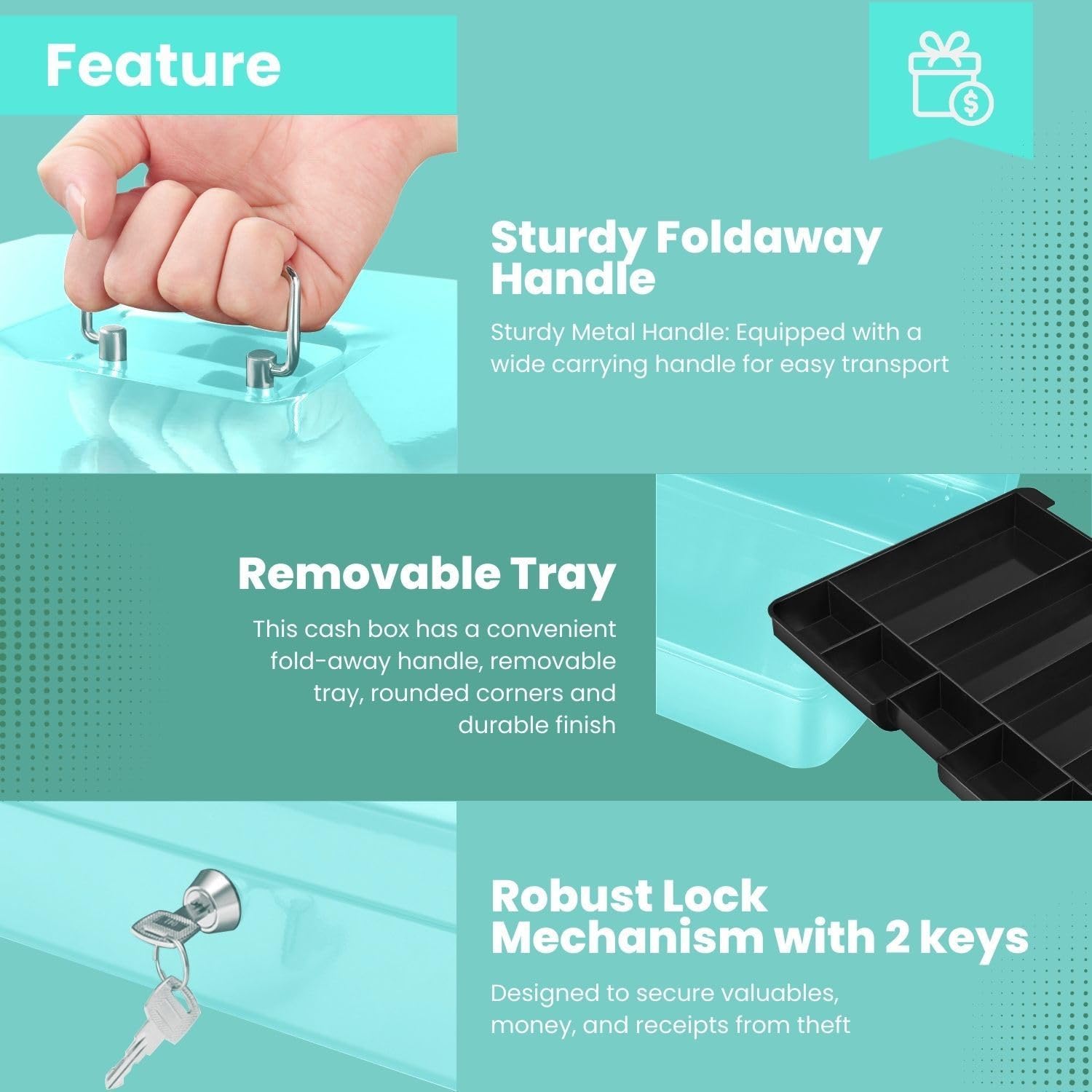 - Secure and Reliable - Our money box with key safeguards your money and valuable items with its secure lock, so you can confidently use them in cashier drawers, at home, or in stores