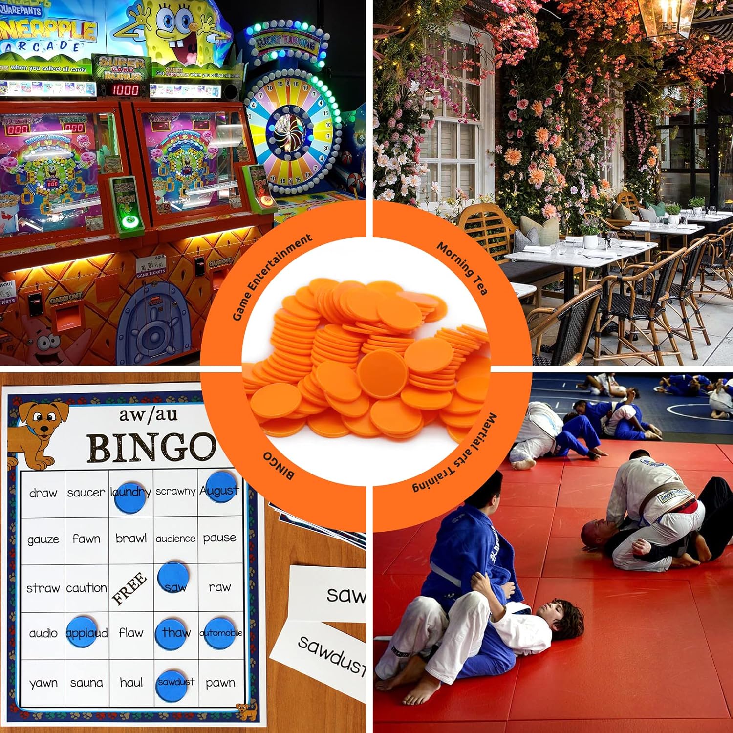 Set of 100 Opaque Plastic Learning Counters Mini Poker Chips Game Tokens with Storage Box (Starry Orange, 1.26 Inch)
