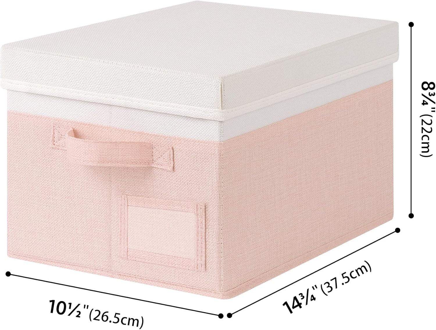 GRANNY SAYS Storage Bins with Lids, Storage Boxes for Organizing, Storage Baskets with Handles, Closet Organizers and Storage, Storage Bins for Shelves, Decorative Storage Boxes, 3-Pack, Pink&Ivory