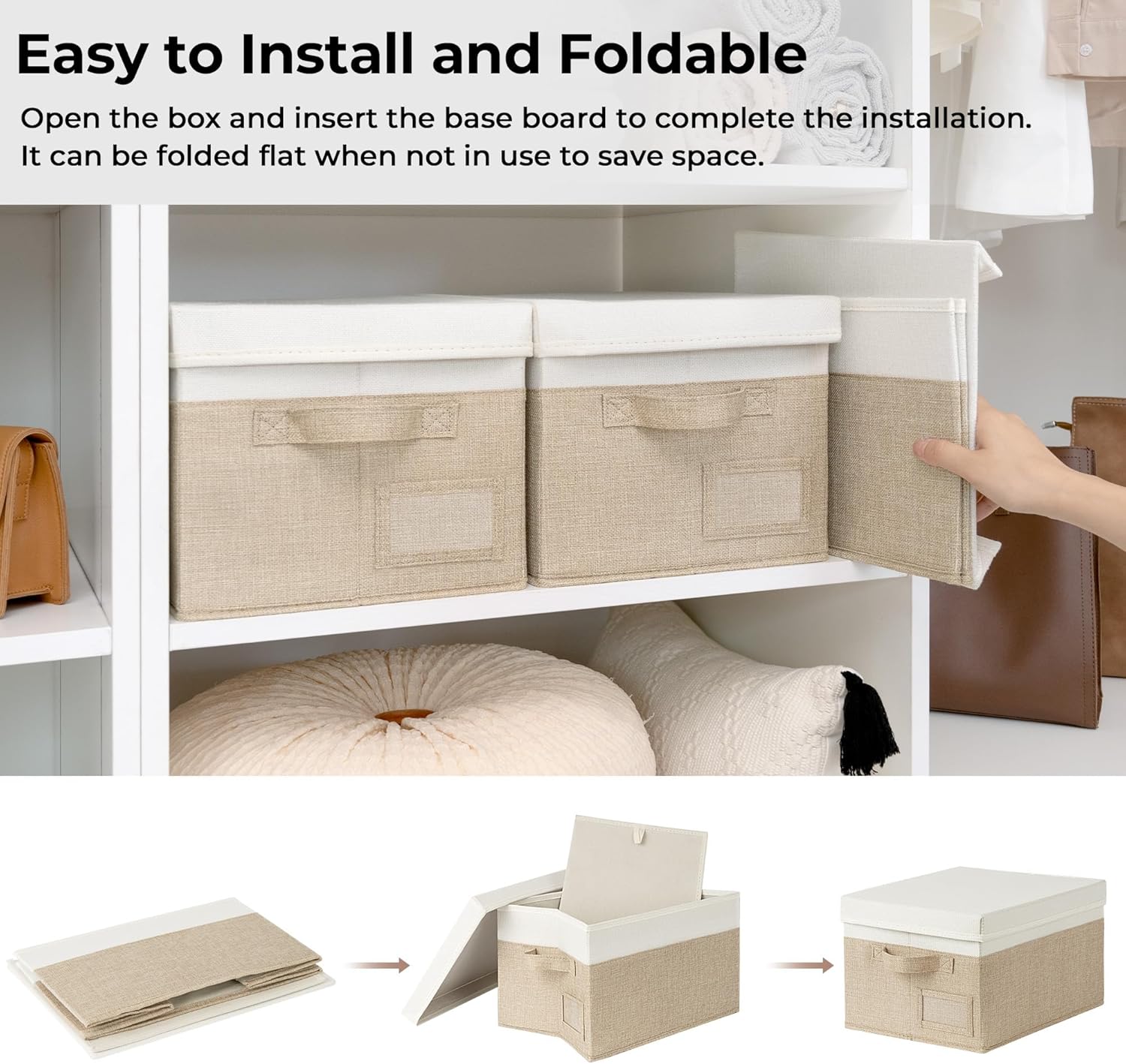 - Stackable and Foldable: The covered storage box is made of heavy-duty thick cardboard around the edges, with a thick base and lid, allowing you to maximize your storage space when stacked. When not in use, these storage boxes easily fold flat to save space.