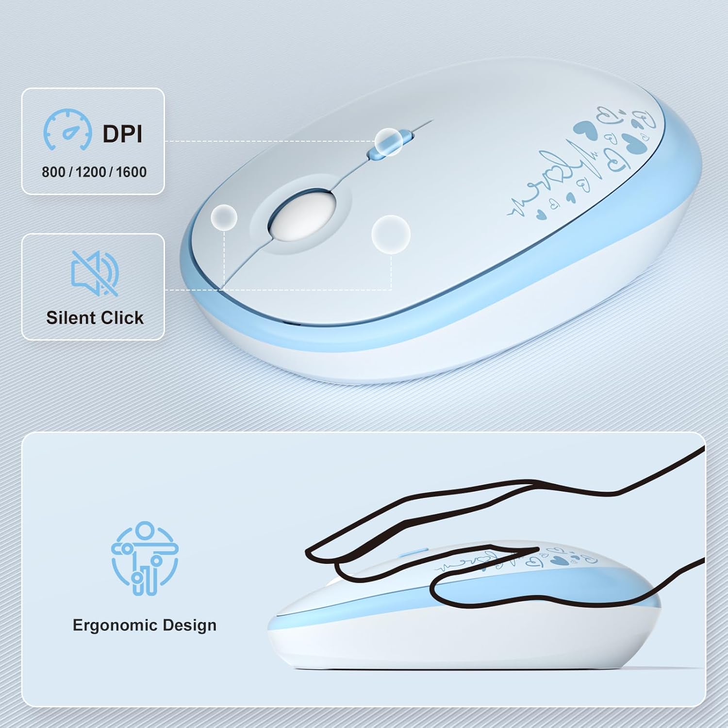 - Cute Wireless Keyboard and Mouse: Colorful aesthetic design retro typewriter keyboard with round keycaps, and with ergonomic foldable stand and anti-slip pad ensures comfortable typing. Quiet mice with 3 sensitivity levels (800/1200/1600) provides precise control.