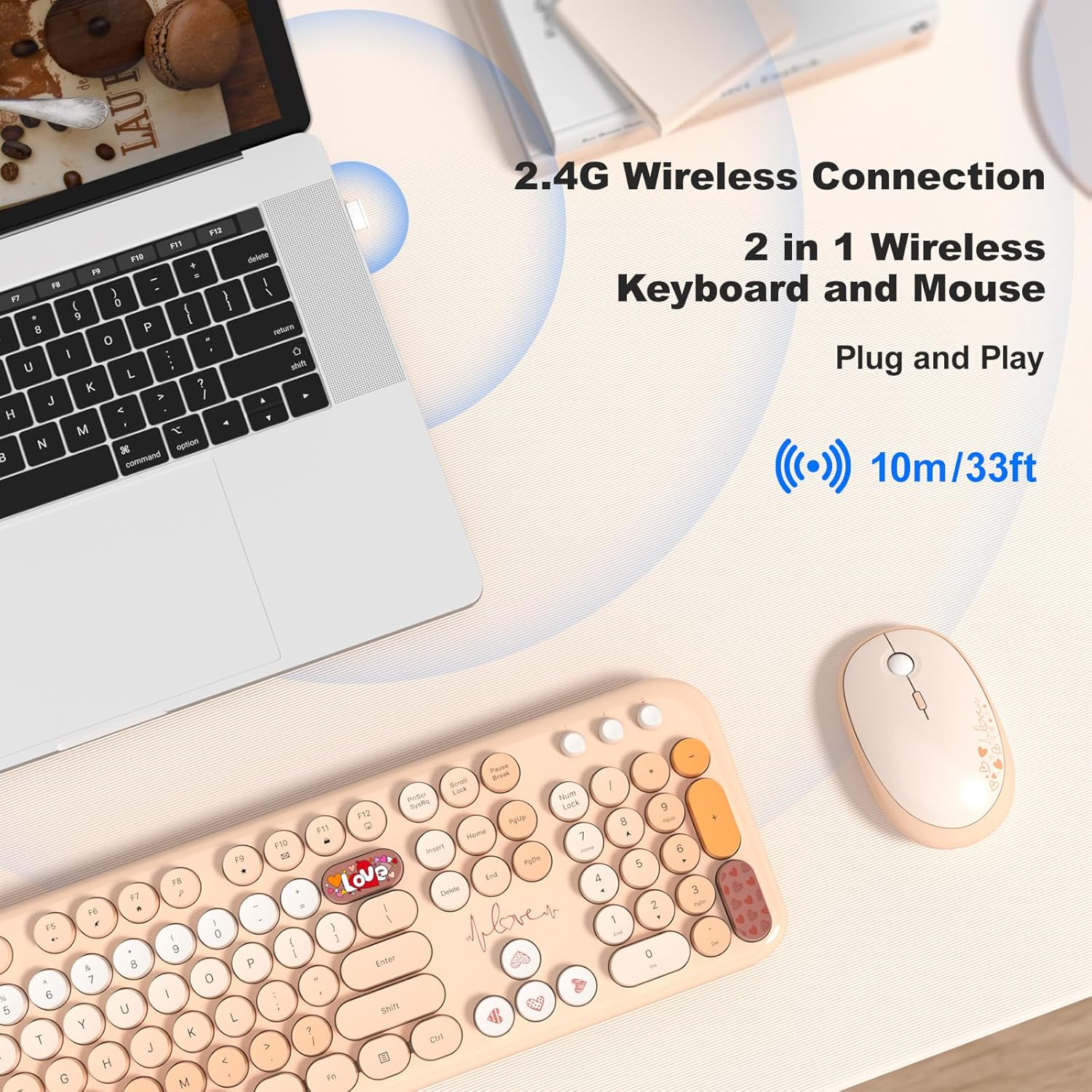 MOFII Wireless Keyboard and Mouse Combo, Cute Full Size Retro Typewriter Keyboard and Wireless Mouse, 2.4GHz Set for PC/Desktop/Laptop/Windows (Yellow Colorful)
