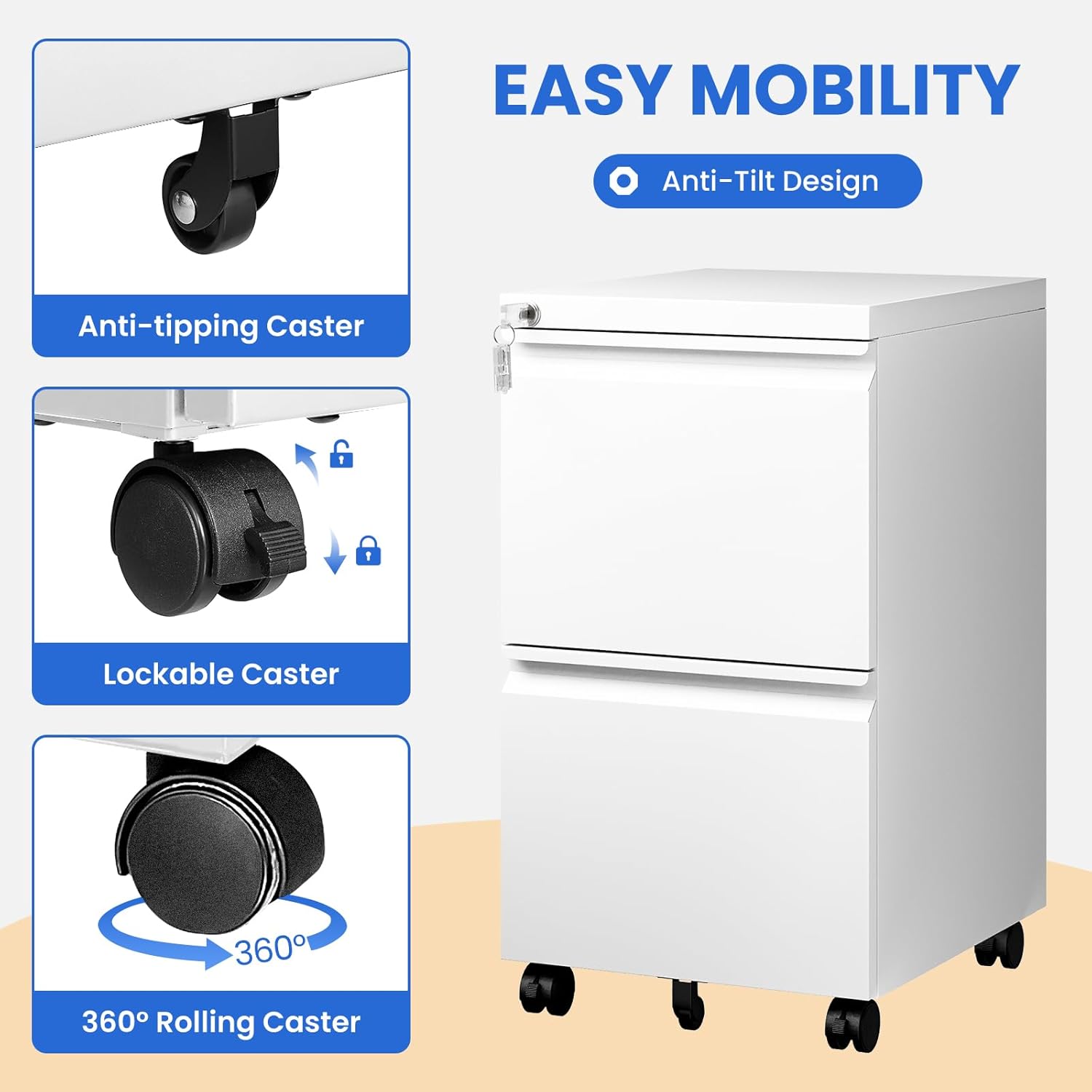- 【Mobile File Cabinet 】: Equipped with 2 lockable casters + 2 x 360° swivel casters + 1x anti-tilt wheel, you can move this filing cabinet easily. 360° swivel casters go to any direction easily, while lockable casters offer braking and the center support wheel prevents tipping.