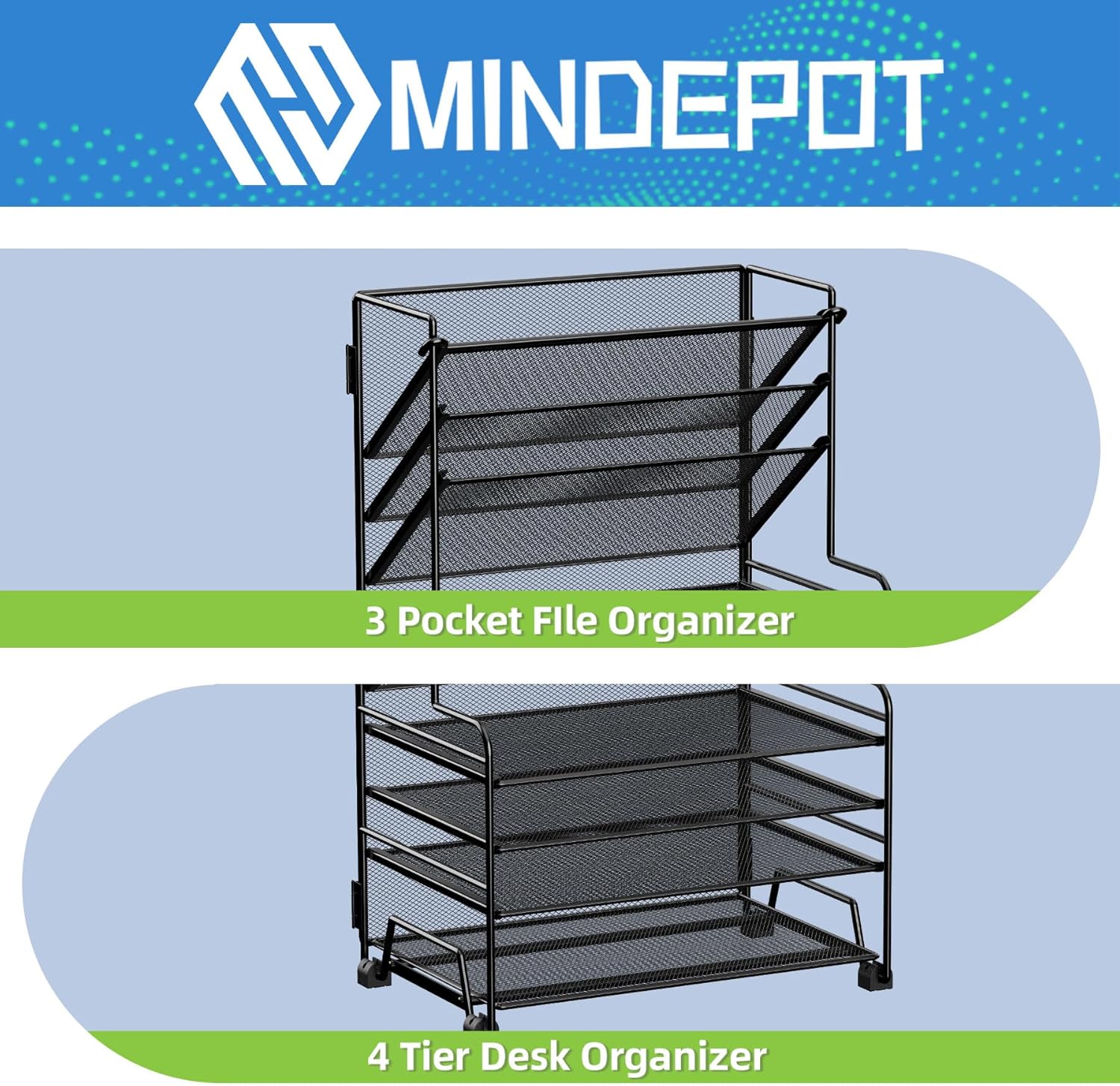 - 【All-in-One Desk Organizer – Maximize Space】This desk organizer combines a 4-tier paper tray (horizontal) and 3-pocket file holder (vertical) to efficiently utilize both horizontal and vertical space. Perfect for organizing documents, folders, and office supplies without cluttering your desk. Ideal for home office, classroom, or workspace.
