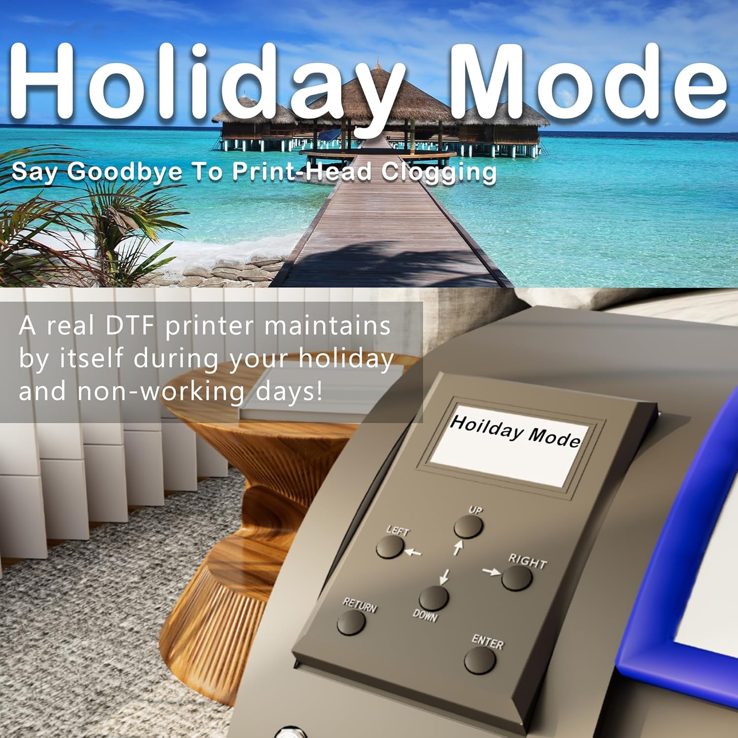 - ✅【Clog-Free DTF Printer Machine】 Patented Holiday Mode auto-cleaning prevents nozzle clogs during downtime. Advanced white ink circulation (A3 dtf printer compatible) extends print-head lifespan 40% longer than standard dtg printer t-shirt machines. Waste ink alerts save 30% consumables.