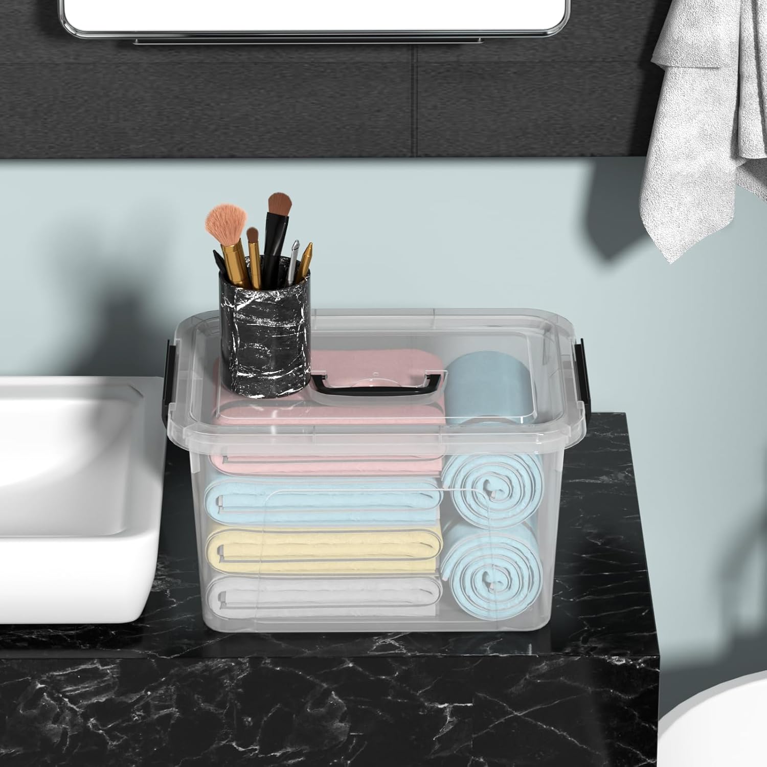 - Equipped with side latches, the clear plastic bin can be lock with the lid securely to protect your things better from dust keeping things clean and safe, and the top handle provides a comfortable grip when carrying or moving the storage box