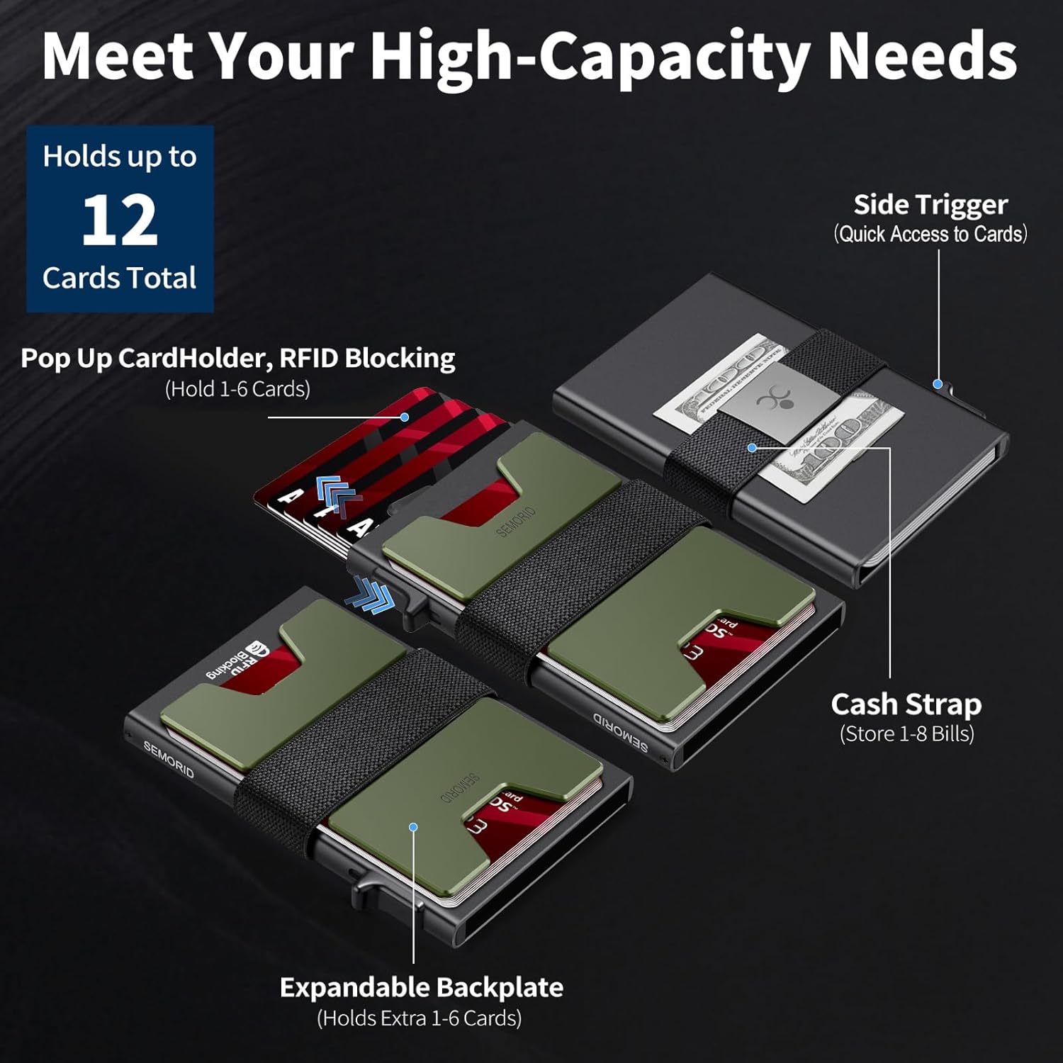 - 💳【Large Storage Capacity】: Our men's wallet can hold up to 12 cards in total - Aluminium card case stores max 5 embossed or 6 smooth cards, in addition the outside expandable backplate holds 6+ cards. The elastic band allows you to hold a few bills or receipts, easily meet your daily card and cash needs.