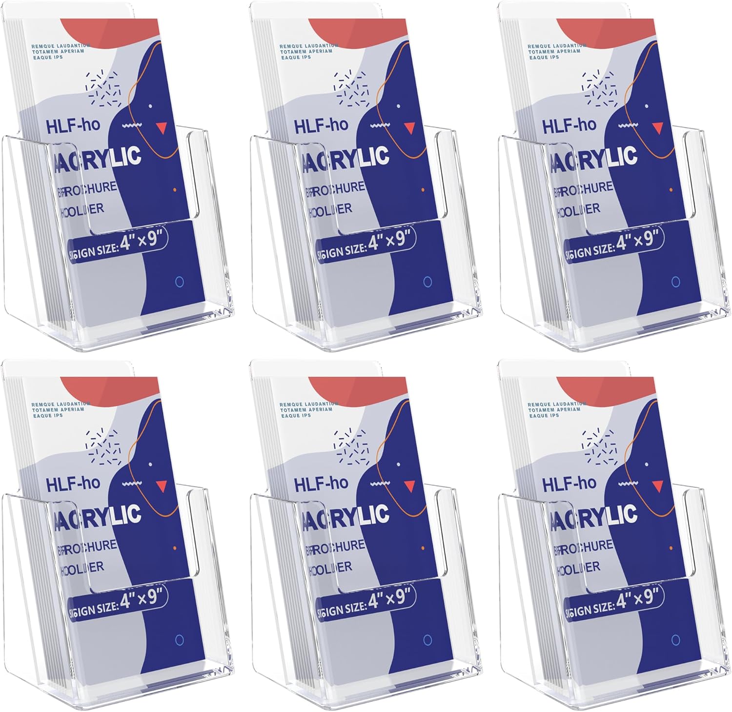 Brochure Holder 4x9 Inch Acrylic Literature Holders Clear Plastic Flyer Display Stand Countertop Use Pamphlet Holder Multi Purpose Organizer for Office, Lobby, Hotels, Trade Shows, 6 Pack