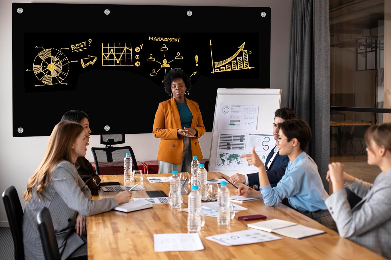 - 【ENVIRONMENTAL & LONG-LASTING】: The strong durable tempered glass surface resists stain and ghosting. Designed with 5mm thickness, rounded corner, and smooth edges. Cleaner, safer, and longer-lasting than traditional whiteboards.