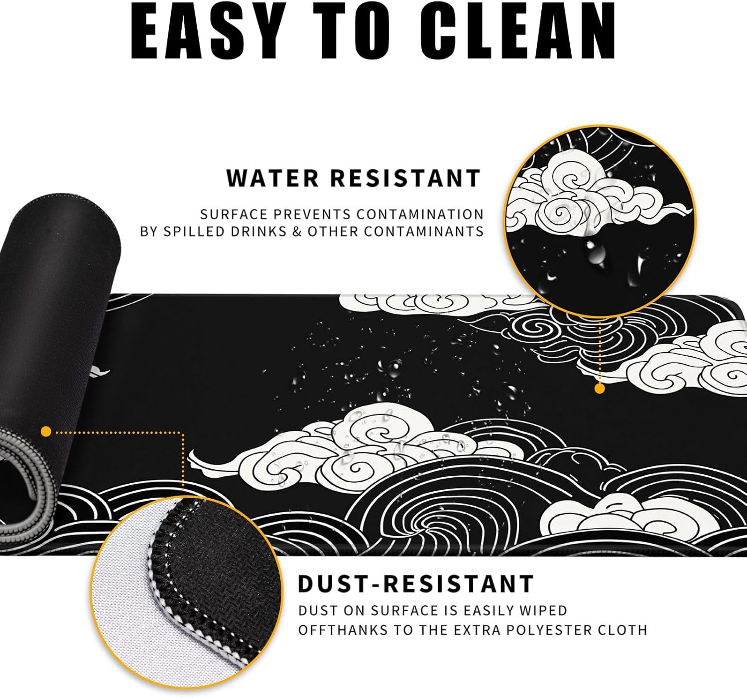 Black and White Mouse Pad Japanese Clouds Mouse Pad XL Anime Big Mouse Pads for Desk Large Gaming Large Mouse Pad for Men Desk Pad with Stitched Edges Non-Slip Large Computer Mat, 31.5x11.8 in
