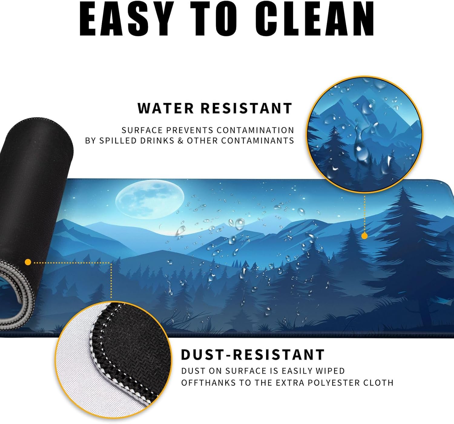 Minimalist Forest Mouse Pad - Dark Blue Night Desk Decor Mat, Moon Large Gaming Mouse Pad for Mountain Desk Computer Keyboard Laptop, Home Office Accessories (31.5x11.8 in)