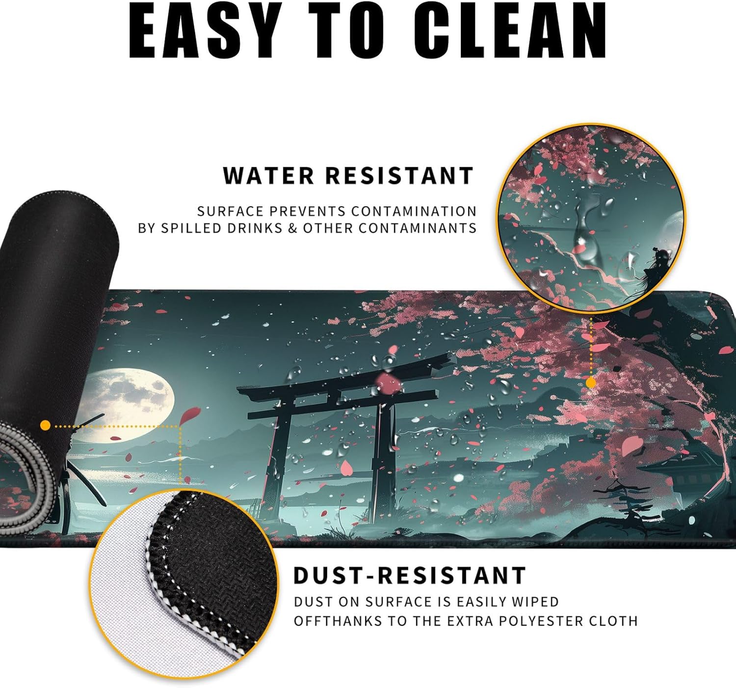 MiaVibte Japanese Full Moon Mouse Pad - Large Gaming Mouse Pad for Computer Keyboard Laptop, Desk Decor Home Office Accessories (31.5x11.8 in), Samurai Desk Mat, Pattern 15