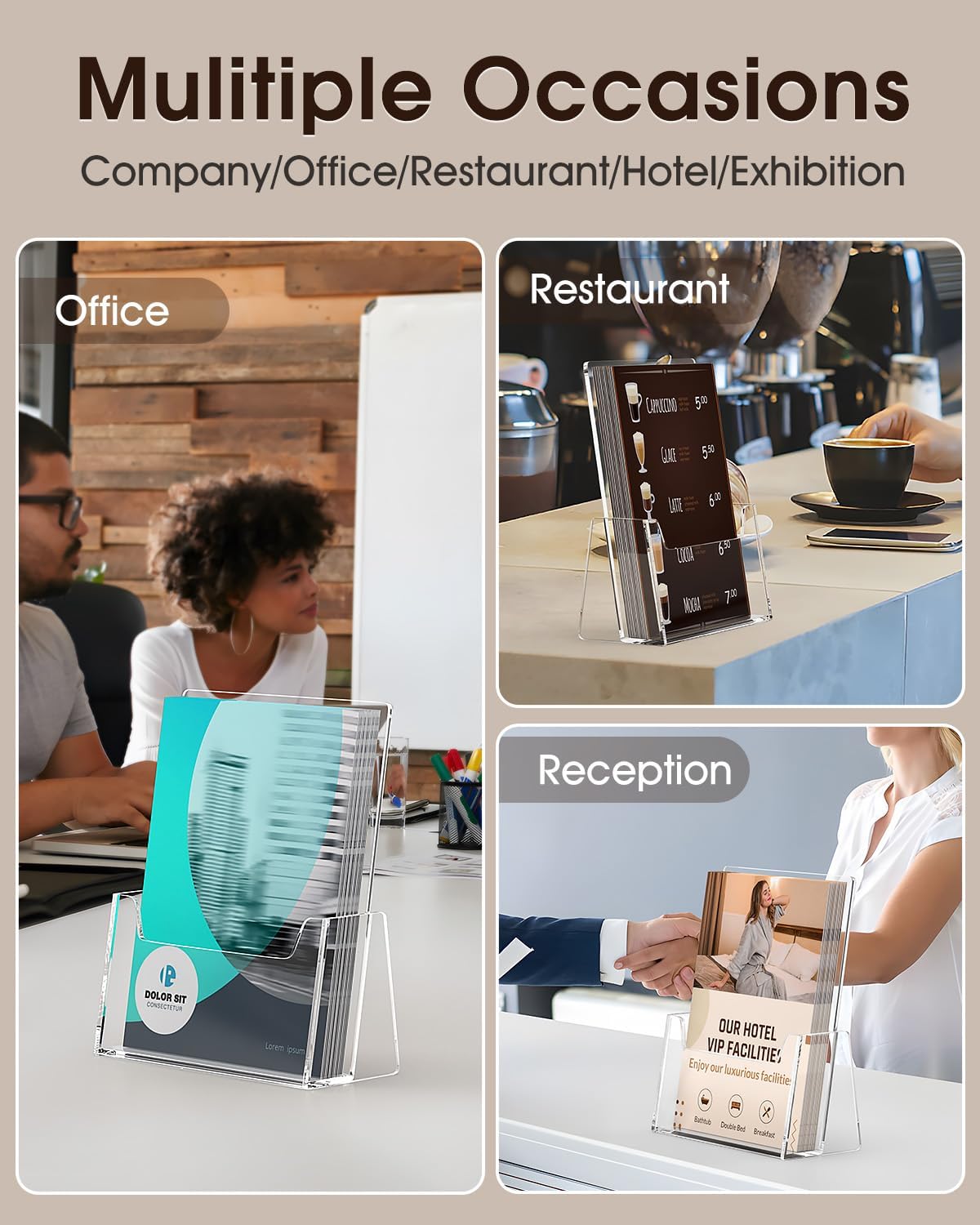 - Clear Display: Acrylic material offers superior transparency compared to PS, ensuring clear display of your brochures. Ideal for enhancing promotional impact in offices, stores, schools, weddings, restaurants, hotels, and various exhibitions.