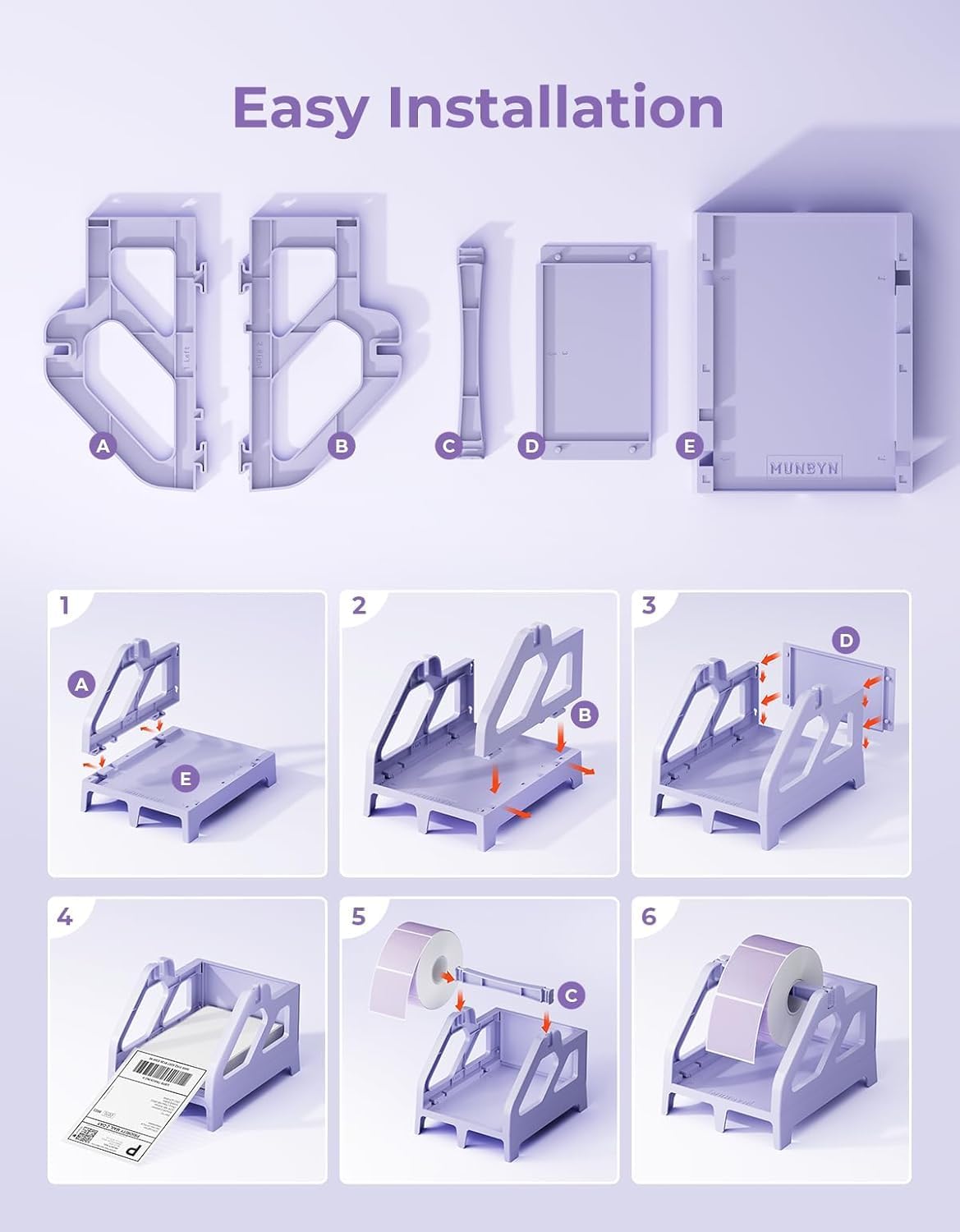 - Quick Installation: MUNBYN Label Holder is easy to assemble and disassemble, with only 5 parts. This label holder is ideal for holding and storing thermal label paper and is ideal for keeping your office desk organized