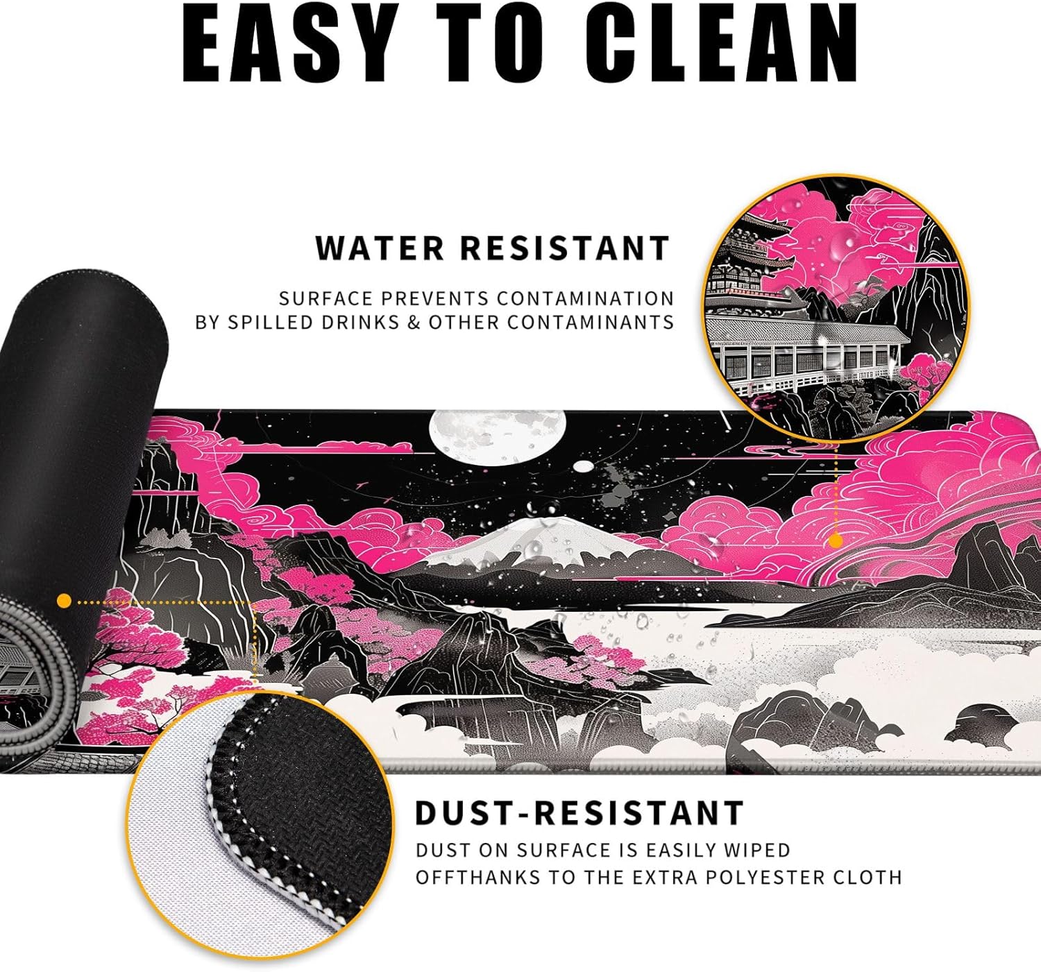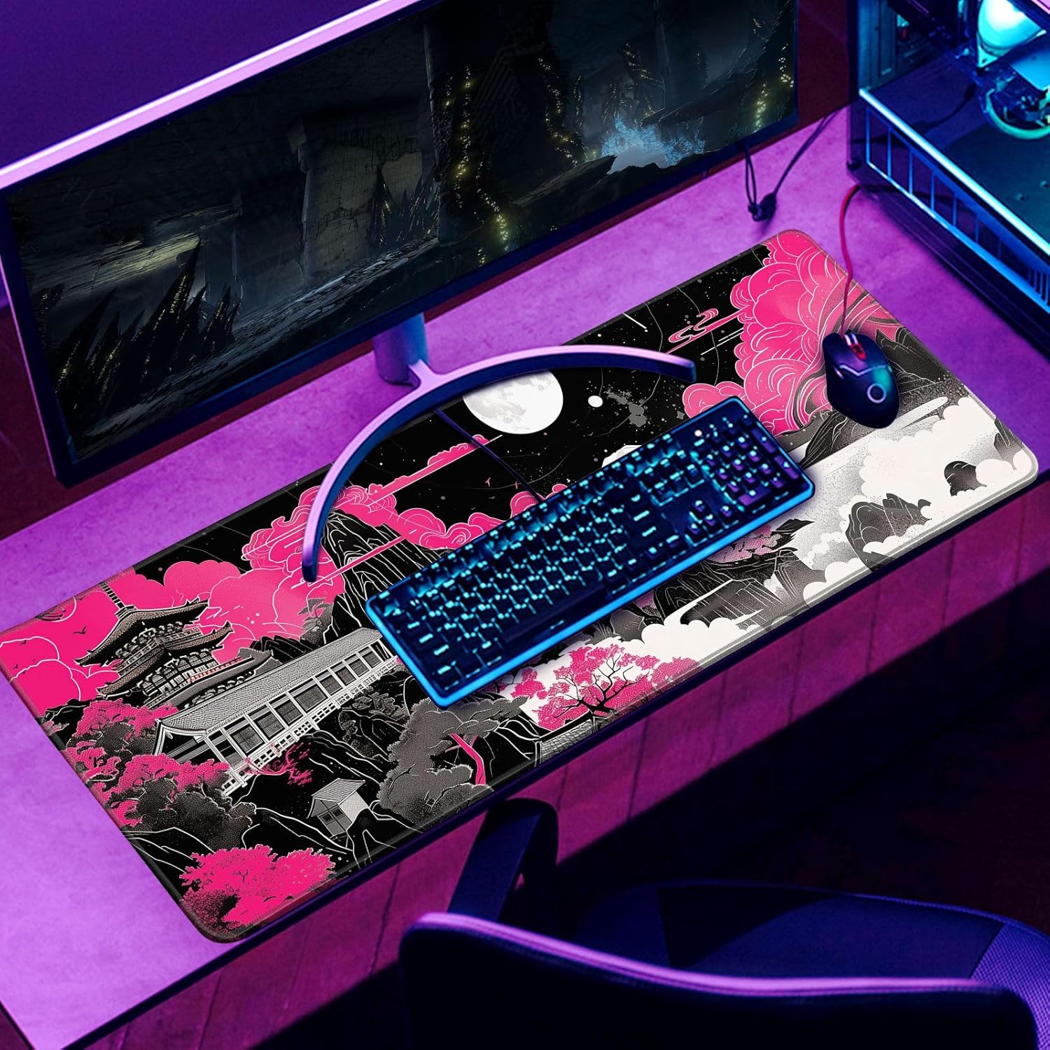Future Kyoto Mouse Desk Pad Japanese Pink Desk Mat Desk Decor Black White Large Gaming Mouse Pad for Desk Mousepad Computer Office Keyboard Laptop Big Mouse Pad Xl-31.5x11.8 in