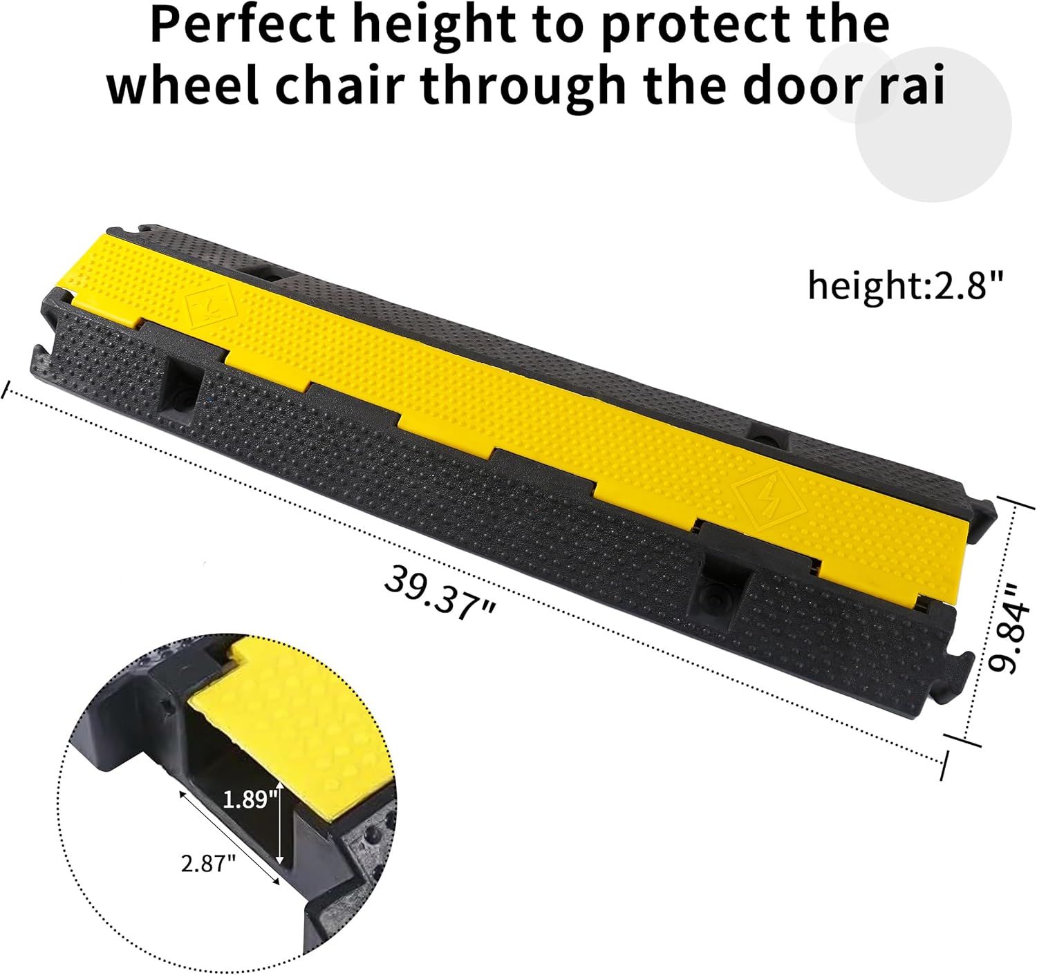 - PACKAGE INCLUDE: 3 pack of high-quality 1-channel rubber cable ramps, the size is 39.37" L x 9.84" W x 2.48" H. Each has 1 channels, which can effectively fix the cables, and the channel size of the cable ramp is 2.87" W x 1.89" H.