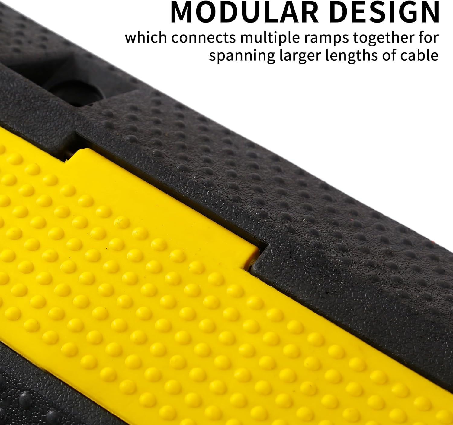 - MODUAL INTERLOCKING: The cord cover ramp adopts a modular interlocking connector design, which can connect multiple identical ramps together to protect longer extension cords.