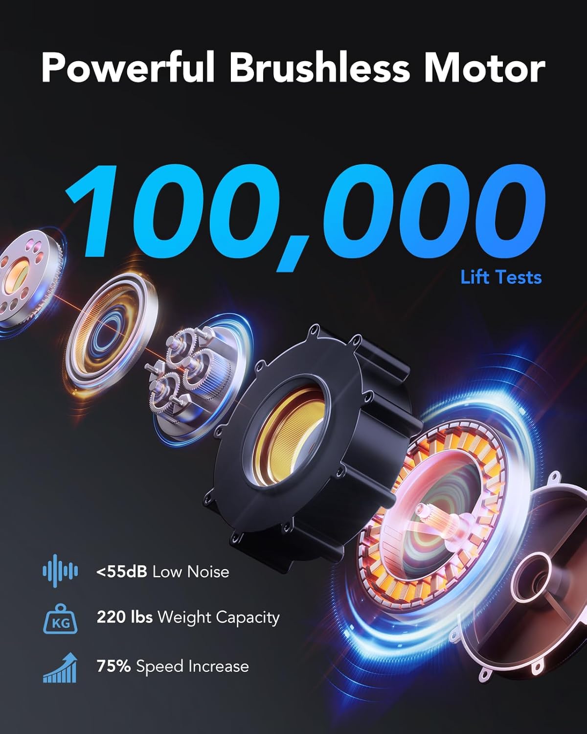 - 【Quite & Faster Brushless Motor <55 dB】Equipped with a powerful brushless motor, this adjustable desk delivers 75% faster lifting speed while maintaining a quiet operation at less than 55 dB. Tested for over 100,000 lift cycles, th e sit to stand desk ensures excellent stability and long service life.