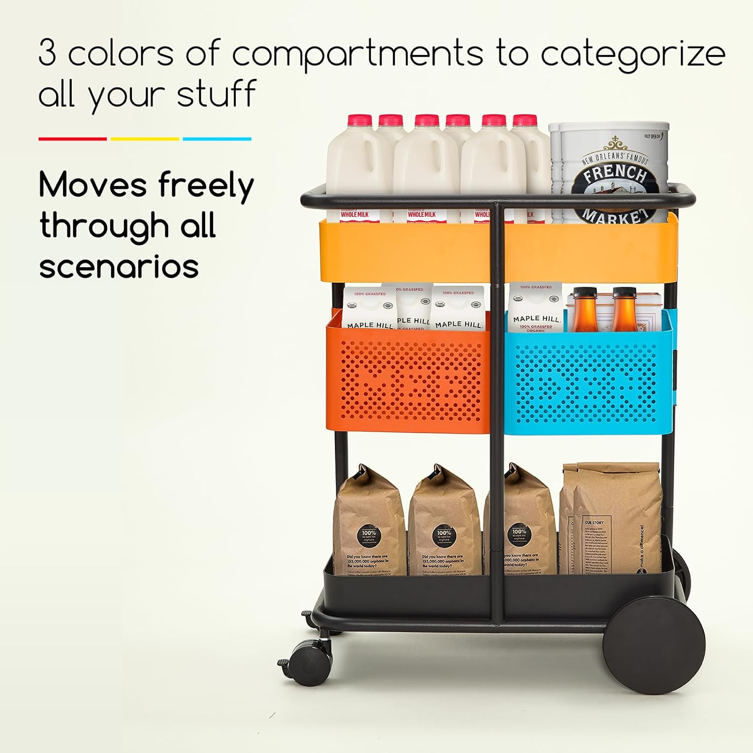- Versatile Rolling Storage Trolly : Multifunctional design of utility cart ensures that it fits perfectly into any space, improving convenience and organization. It can be used as a tool cart, storage cart, book cart or organizer for office, bedroom, kitchen, pantry, bathroom, garage, studio, etc. Colorful storage compartments add a vibrant touch to your room.