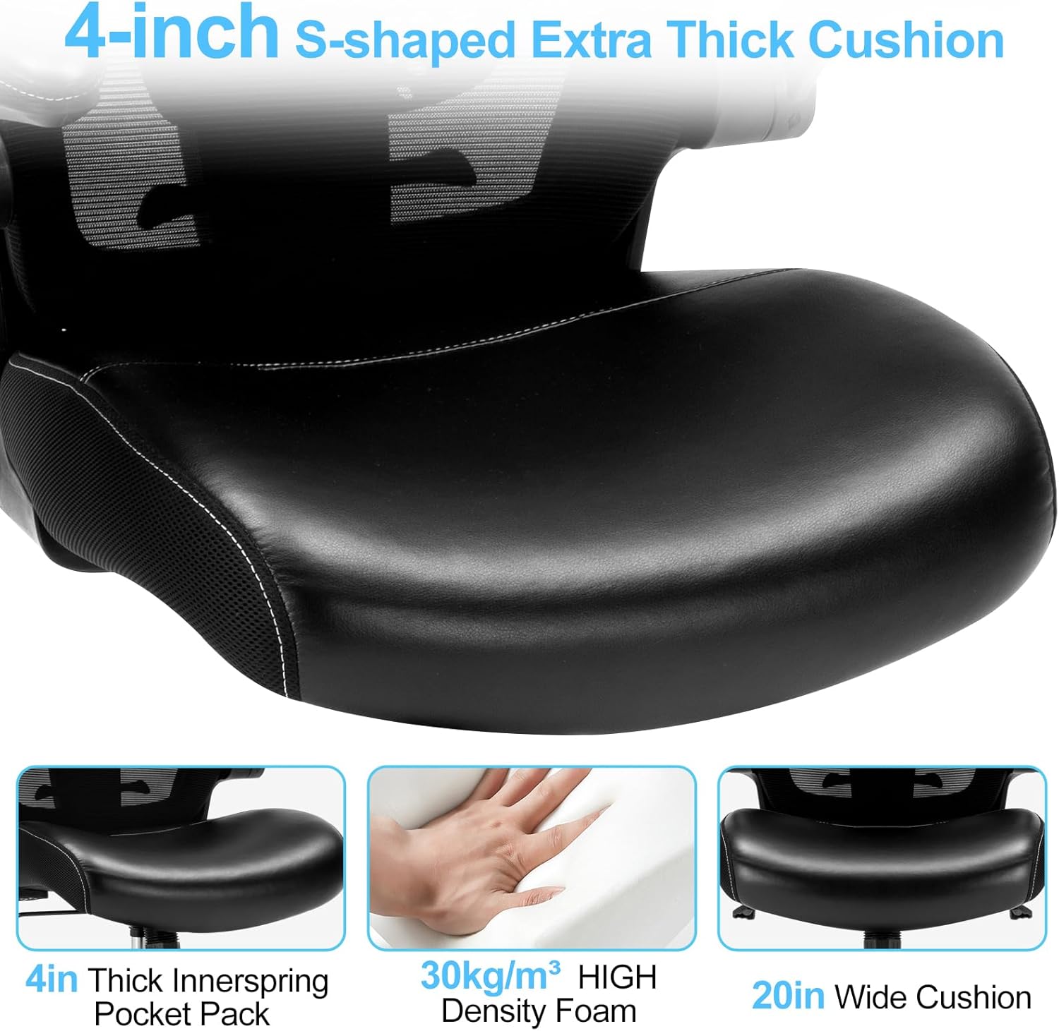- 【ERGONOMIC DESIGN OFFICE CHAIR】 Visible at a glance, the difference is clear ! The backrest design conforms to the shape of the human spine, complemented by adjustable lumbar support to keep you comfortable during long periods of sitting. The 4-inch thick cushion gives you the feeling of working from a sofa.