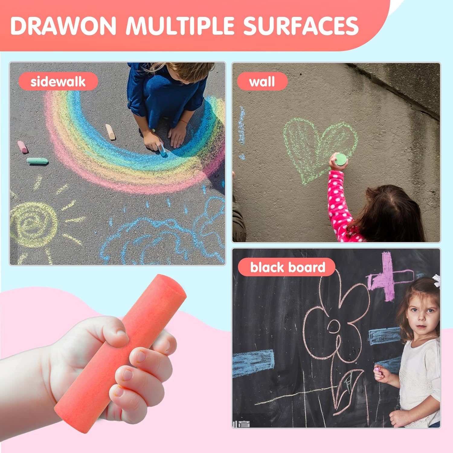 - Perfect for Outdoor Fun: Whether you're drawing on the sidewalkdriveway, or playground, our chalk is perfect for hours of outdoorfun.