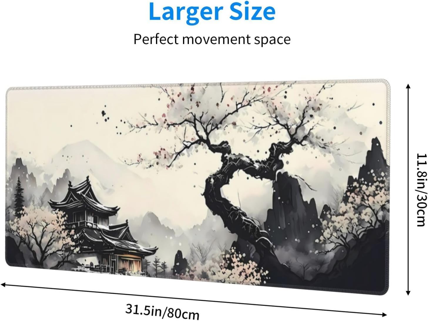 Extended Gaming Mouse Pad, Large Gaming Mouse Waterproof with Stitched Edges, Non-Slip Desktop Pad for Home and Office, Level Up Your 31.5x11.8 Inch… (wash Painting)