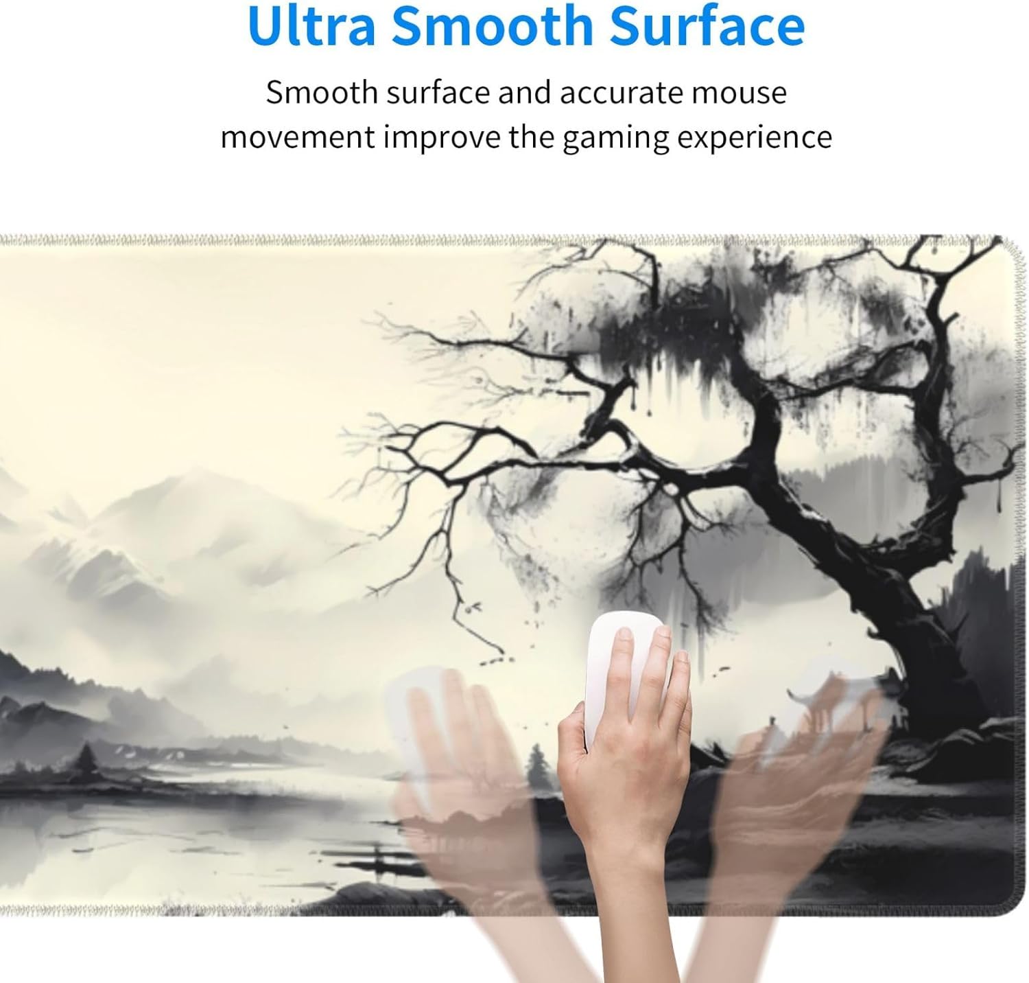 Gaming Mouse Pad Desk Pad,Extended Big Mouse Pad,31.5x11.8 Inch Long Computer Keyboard Mouse Mat Mousepad with 3mm Non-Slip Base and Stitched Edge for Gaming and Office⦠(wash painting2)