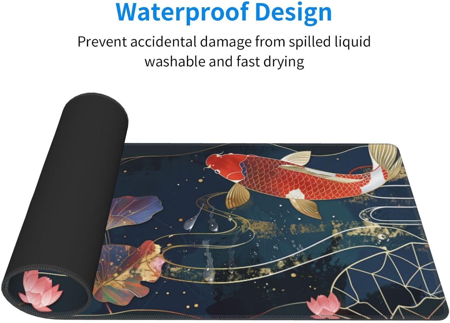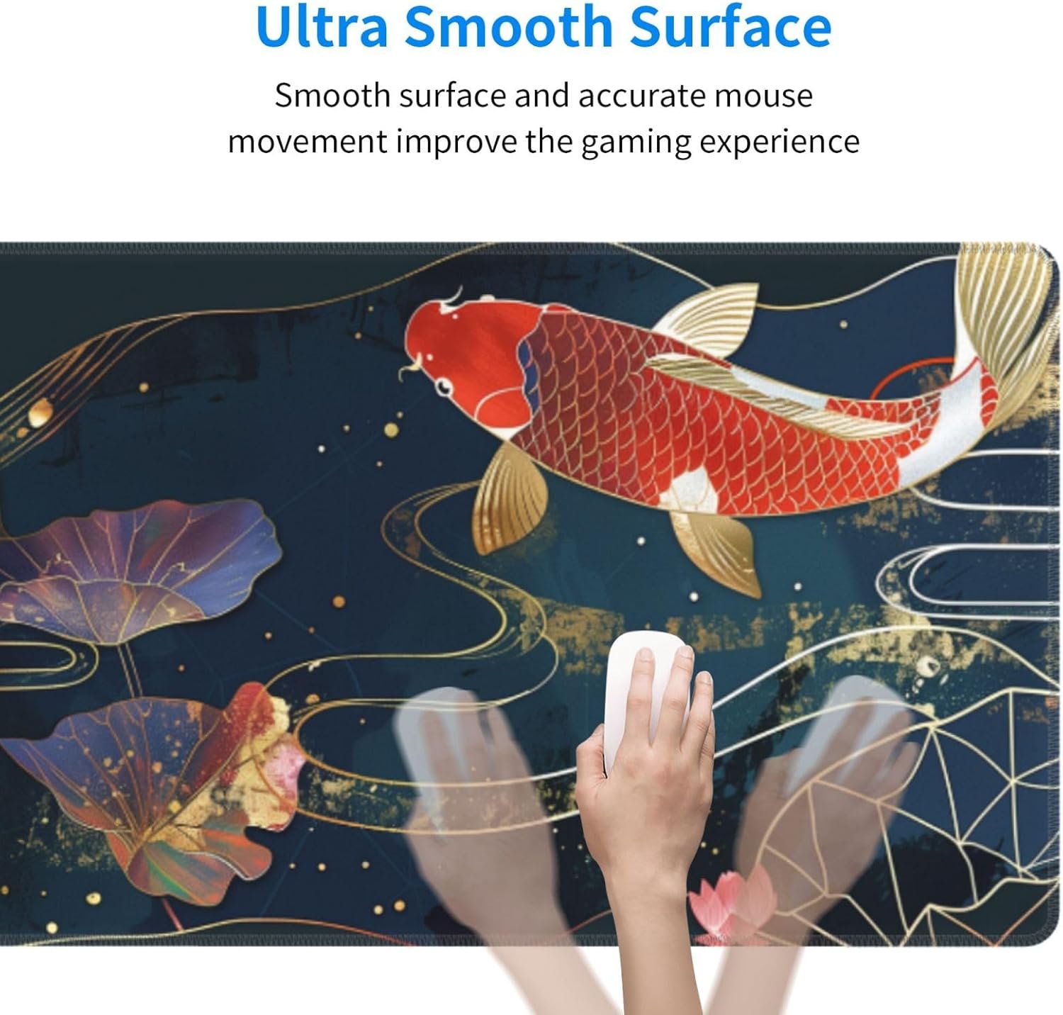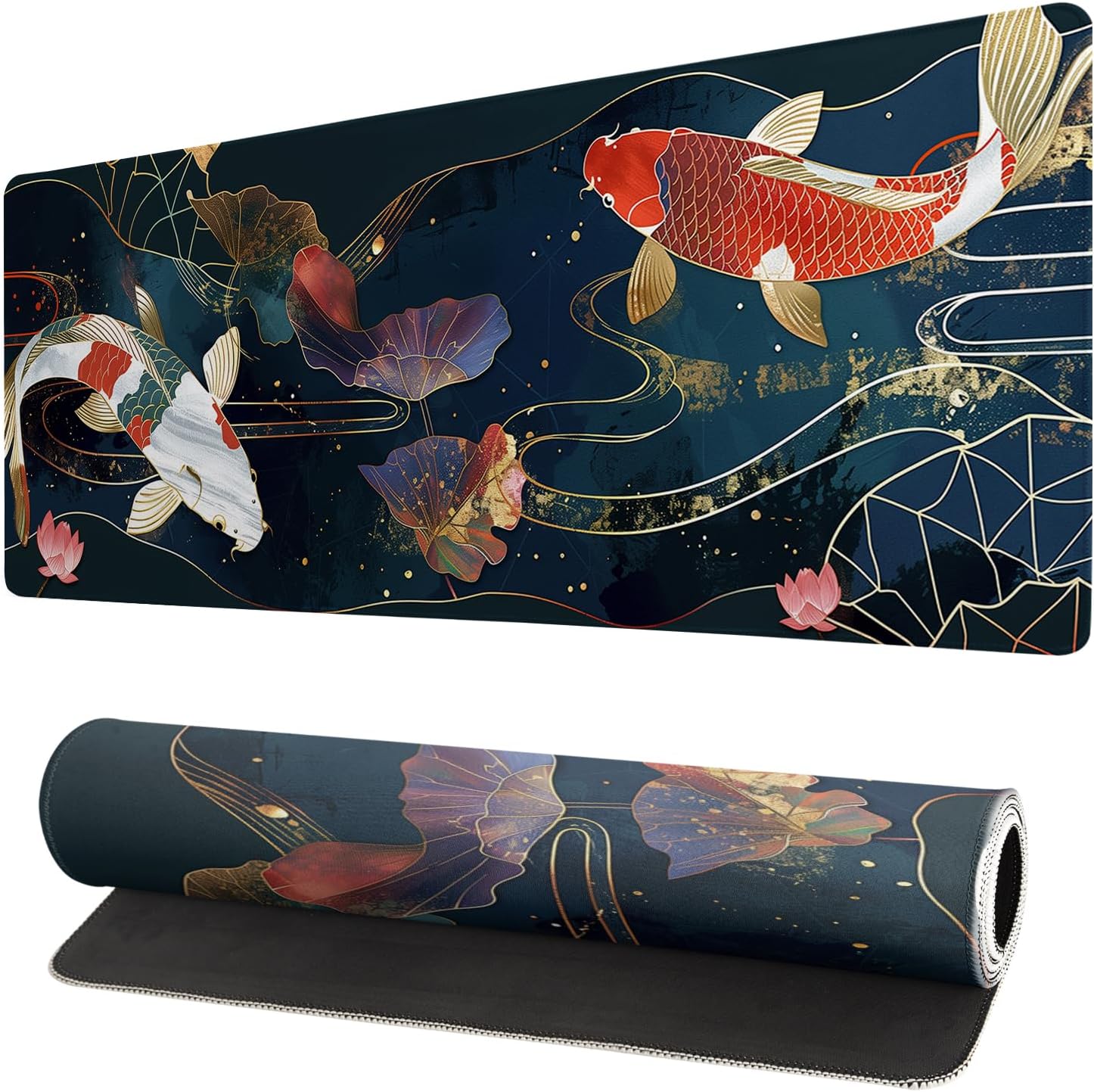 Gaming Mouse Pad Desk Pad,Extended Big Mouse Pad,31.5x11.8 Inch Long Computer Keyboard Mouse Mat Mousepad with 3mm Non-Slip Base and Stitched Edge for Gaming and Office⦠(koi)