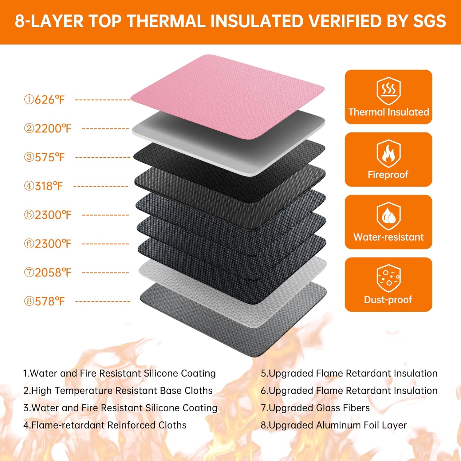 DocSafe 5200°F Document Organizer with Lock,Upgraded Heat Insulated Fireproof&Waterproof Box 8 Layers File Organizer,Portable Home Travel Safe Storage for Important Documents, Files,Pink (Soft)