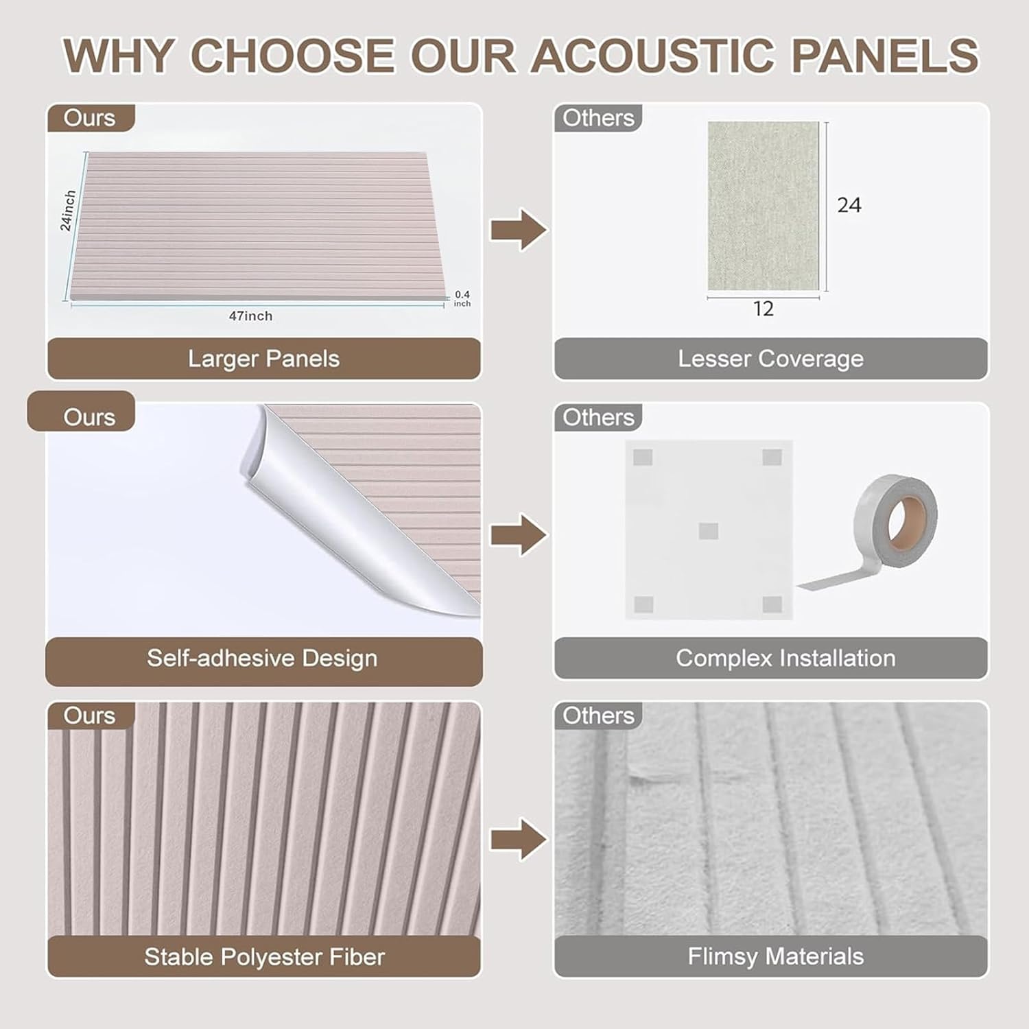 10Pack Large Acoustic Panels, 48x24x0.4 inch Sound Proof Panels for Walls, Self-Adhesive Sound Dampening Wall Panels, Noise Absorbing Decorative Wall Panels, Wall Noise Blocker for Home Studio (Camel)