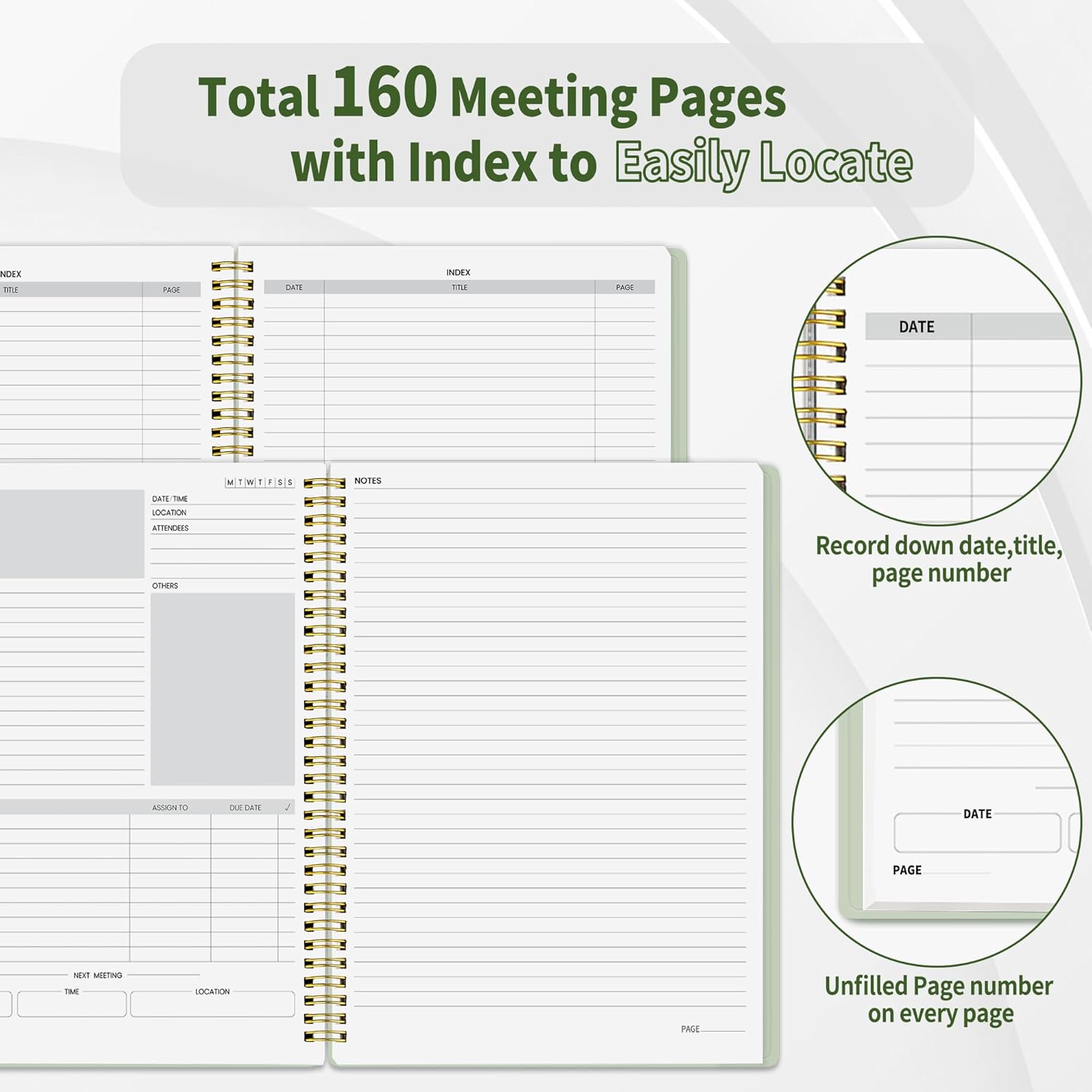 - Each 160 Pages Per Book: Provide ample space for note taking & planning and with the date section at the top for tracking them. With 160 pages for meeting minutes, the manager notebook will cover more than half a year, even in daily use. Also provides index pages for organizing this office planner.