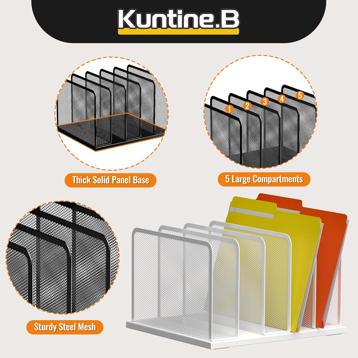 Kuntine.B Desk File Organizer Upright Mesh Desktop Organizer File Sorter Office Organization File Holder for Home, Office & Classroom (White, 1 Pack 5-Section)