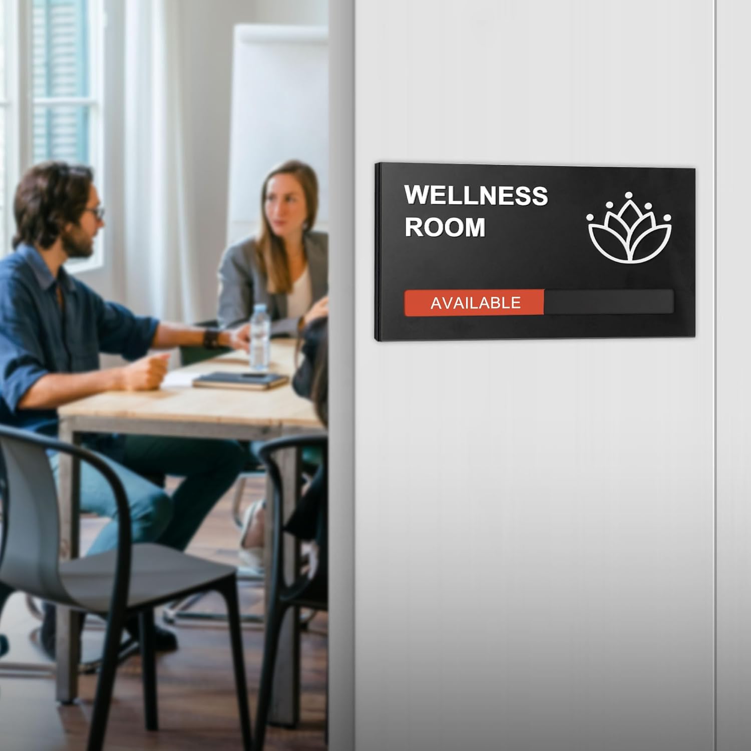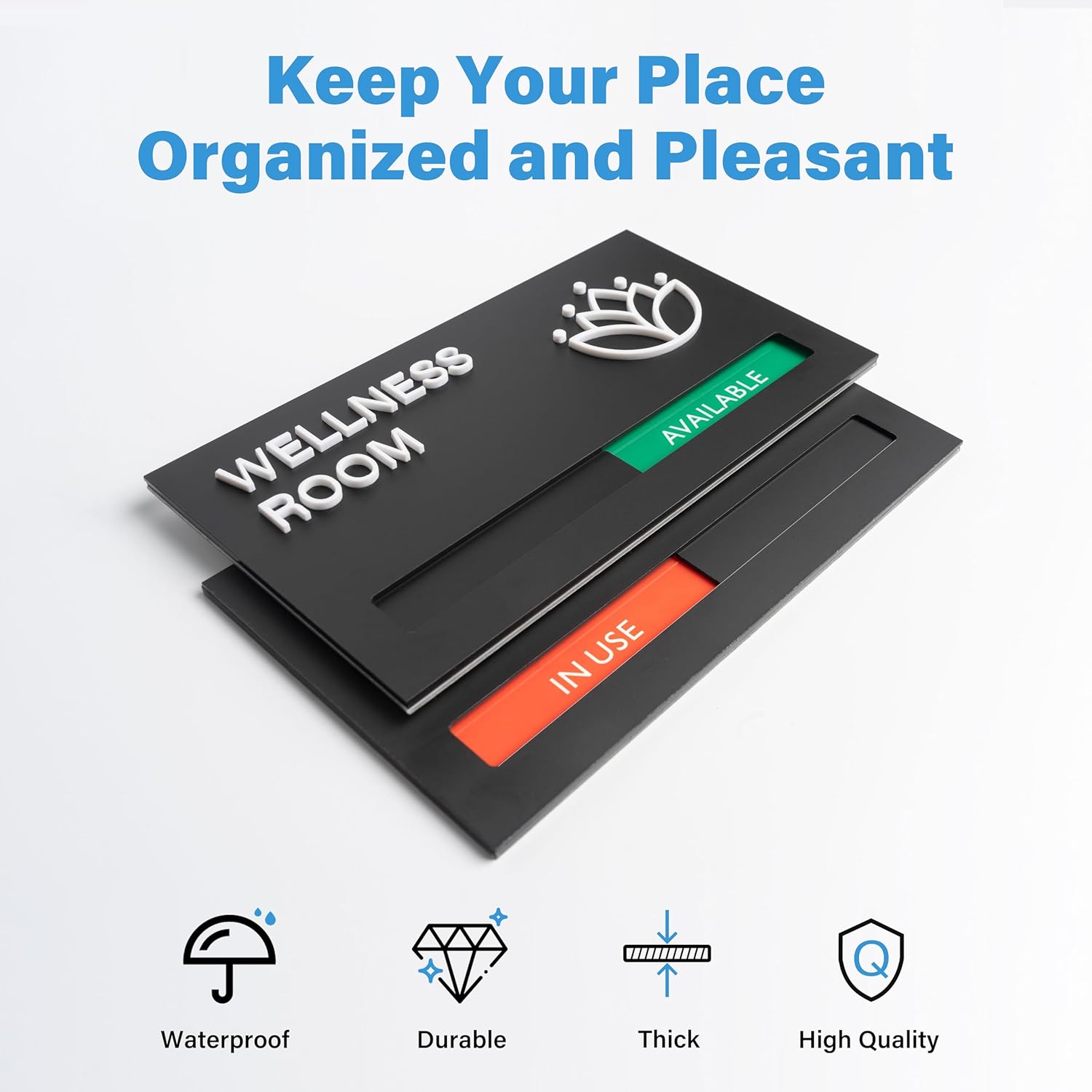 - Enhanced Visibility: Our 8.8" x 4.9" wellness room sign offers superior visibility with its large size and high-contrast design. The black background, white lettering, and red/green indicators ensure clear and immediate recognition.